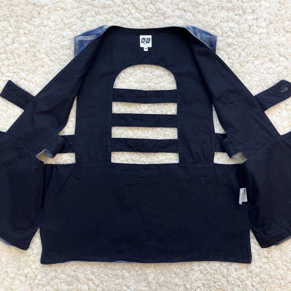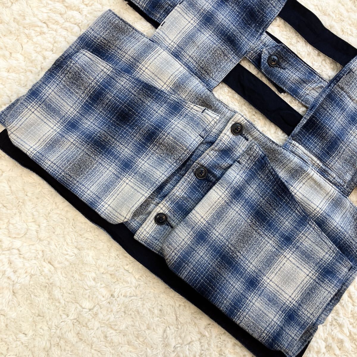 バックのゲームポケットをはじめとした多彩なポケットデザインやフロントのストラップがユニークなデザイン。 収納力の高さに加え、レイヤードを活かした幅の広いスタイリングもお楽しみ頂けるアイテムです。しかも永遠の定番ブルー×ブラック×ホワイトのシャドーチェックです。