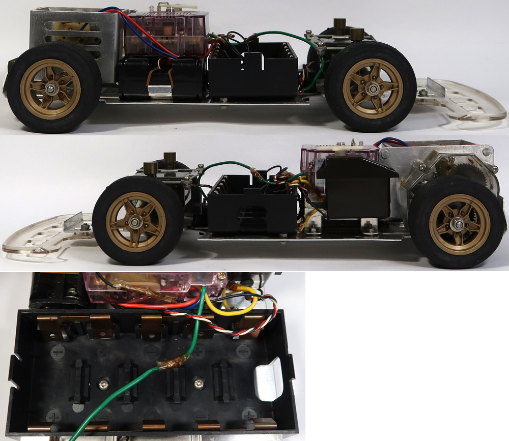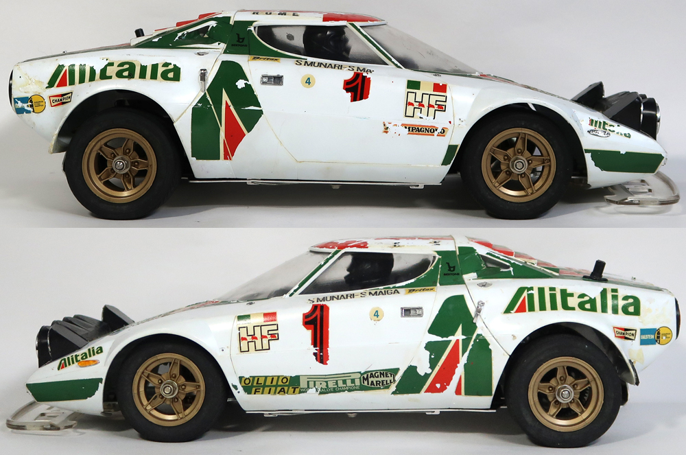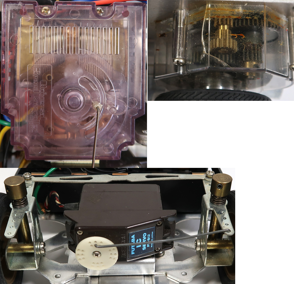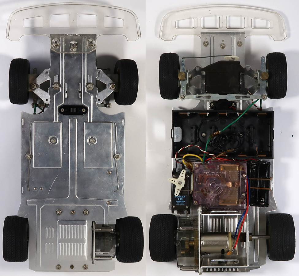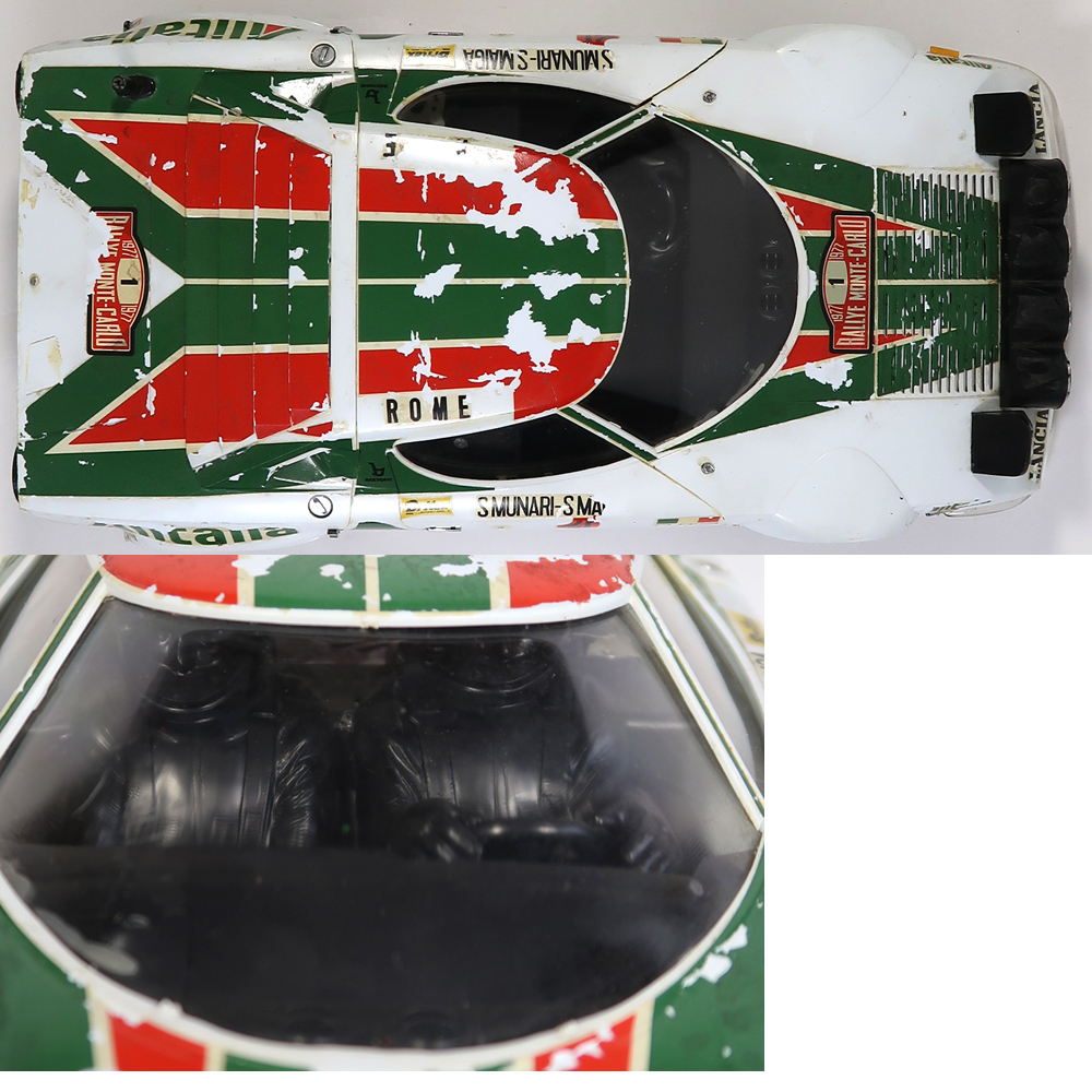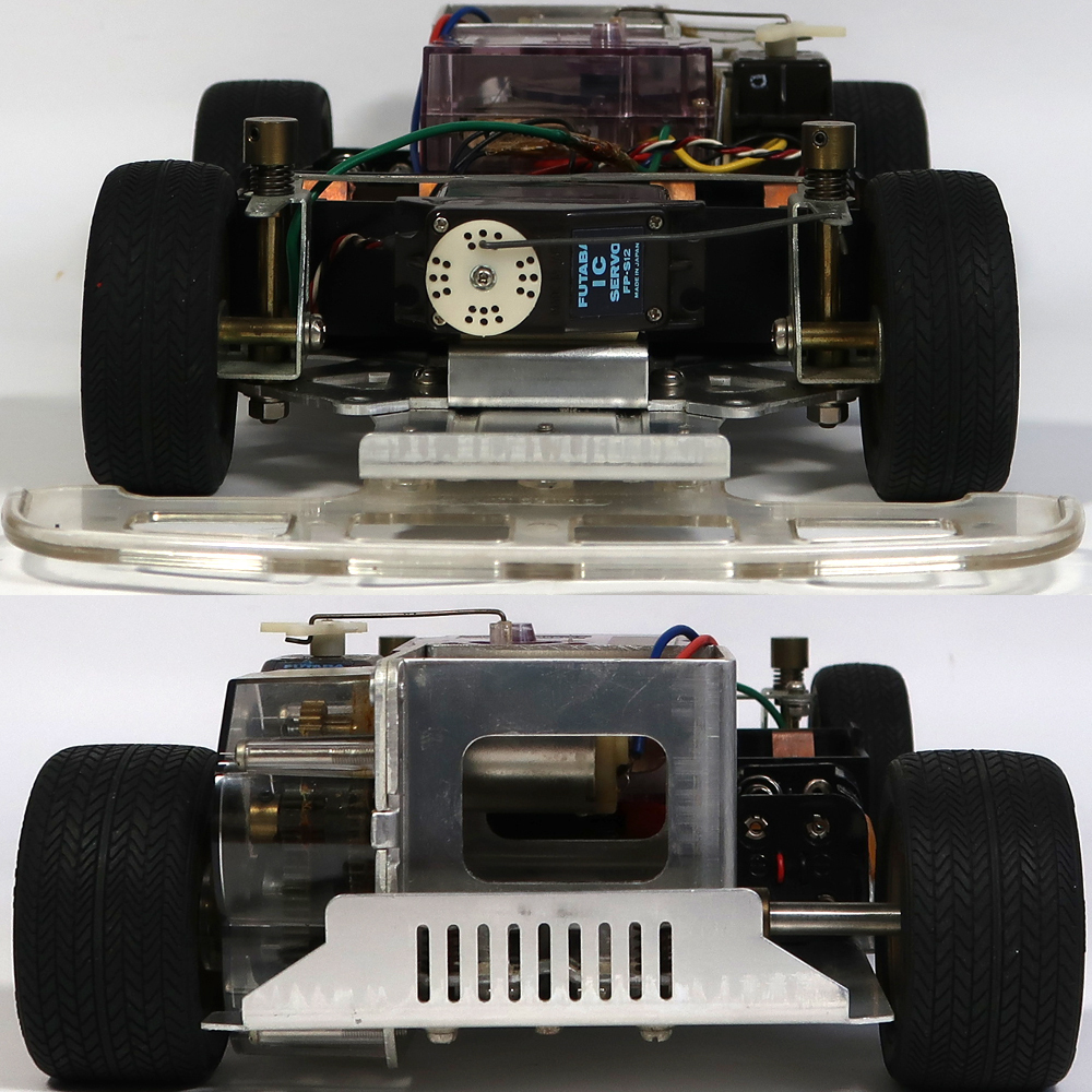 出品は画像の物が全てです。使用品ですので擦り傷や汚れがあります。ある程度はクリーニングはしました。ボディのステッカーに剥がれが多数あり擦れば剥がれます。リアウィングやワイパーが紛失しています。ギアーボックスにヒビがあります。しかしシャーシは中古でこの年代のものとしては状態は悪くないです。奇跡的にタイヤも劣化や極端な変形がないです。シャーシ全体を見ても錆はほとんどありません。そのほかは特にひどい破損はないかと思います。プロポと受信機の方へ電池を入れてテストしました。通電はされております。プロポ及び受信機の操作はできましたが、脱線があるようで通電しなくなることが多々ありました。前進行進のスティックのバネがなくなっていますので自動で中央には戻りません。プロポを開けて確認しました。これに合うバネをつければ元に戻りそうです。駆動系のテストのためにシャーシの方へ電池を入れてテストしました。スピードコントローラーを手動で動かしても一切モーターは回りませんでした。スピードコントローラー自体は綺麗な状態です。手動でタイヤを回しましたがギアは問題なく回転していますしデフギアも機能しております。ラジコンを熟知していてメンテナンスや多少の修復をすればすぐに動作させることは可能かと思います。あとは画像をご覧ください。分かる事は以上です。お取引後は一切のサポートはしておりませんので問題があればご自分でご対処ください。お取り引き後に説明以外の不足品や説明以外の破損や故障が有ったとしても返品は出来ませんしクレームもお受けできません。問題があれば全てご自分でご対処ください。