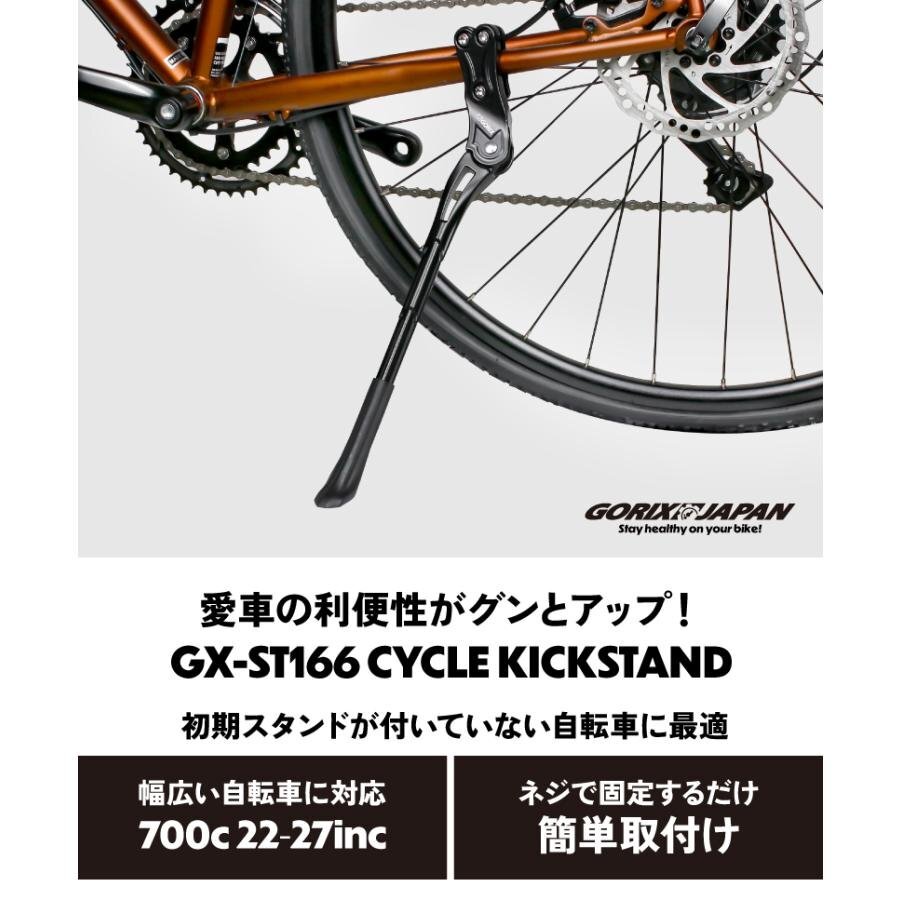 GORIX 自転車用キックスタンド GX-ST166 「簡単取り付け!幅広い自転車に対応するキックスタンド」 手軽に取り付け可能で、22~27インチの幅広い自転車に対応。 ロードバイクやクロスバイク、MTBなど初期スタンドがない自転車にぴったりです。 長さ調整ができるため、自転車に合わせて最適な角度でしっかり支えます。 軽量ながら高強度なアルミニウム合金製で、耐久性も抜群。さらに、地面と接する部分には滑り止め加工を施し、安定感も向上。 シンプルな設計で使いやすく、毎日のサイクリングがより快適になります! 取り付けるだけで、愛車の利便性がグンとアップ! 特徴 ●手軽に取り付けできるモデル ●22-27インチに対応し幅広い自転車タイプに取付け可能 ●長さ調整可能 ●高強度なアルミニウム合金素材を採用し軽量で耐久性を持ち合わせる ●ロードバイクやクロスバイク、MTBなど初期にスタンドがついていない自転車に ●地面と接する箇所には滑り止め加工で安定性が向上 【手軽に取り付け】 複雑な工具は不要!六角レンチ5mmがあれば誰でも簡単に取り付けが可能です。 【22~27インチ対応の汎用モデル】 ロードバイク、クロスバイク、MTBなど、さまざまなタイプの自転車に幅広く対応。 初期スタンドが付いていない自転車に最適です。 【自由に長さ調整】 使用シーンや自転車に合わせて、スタンドの長さを調整可能。しっかり自転車を支えます。 【高強度・軽量アルミニウム合金製】 耐久性に優れたアルミ素材を採用し、軽さと頑丈さを両立。 自転車通勤や自転車通学などの日常使いから街乗り、ツーリングまで安心してお使いいただけます。 【滑り止め加工で安定性あり】 地面と接する部分には滑り止め加工を施し、滑りやすい場所でも安定感を実現。 【商品内容】キックスタンド、日本語説明書 【素材】アルミ合金本体 、ゴムフットキャップ 【適応サイズ】22-27インチ 【重量】370g 【固定位置】チェーンステー 【サイズ】全長35cm-39.5cm 【本製品についても注意事項】 ・本製品に取り付け用の工具は付属しておりません。 ・フレーム側の取り付け部分が丸形のチェーンステイには対応しておりません。スタンド側の取り付け部分が楕円形のため、取り付けができない場合がございます。 またカーボンフレームの自転車には装着できません。ネジに、錆が見られる場合がございます。これは製造工程や保管環境の特性によるものであり、製品の機能や安全性には影響ありません。ご確認のうえ、適合する自転車への取り付けをお願いいたします。 商品は入荷によりキズがある場合があります。 傷や細かい汚れが気になる方や神経質な方は入札をお控え下さい。 入荷時期により予告無く一部仕様変更する場合が有ります。 カラーはディスプレイ種類環境等により実物と異なって見える場合がございます。 |