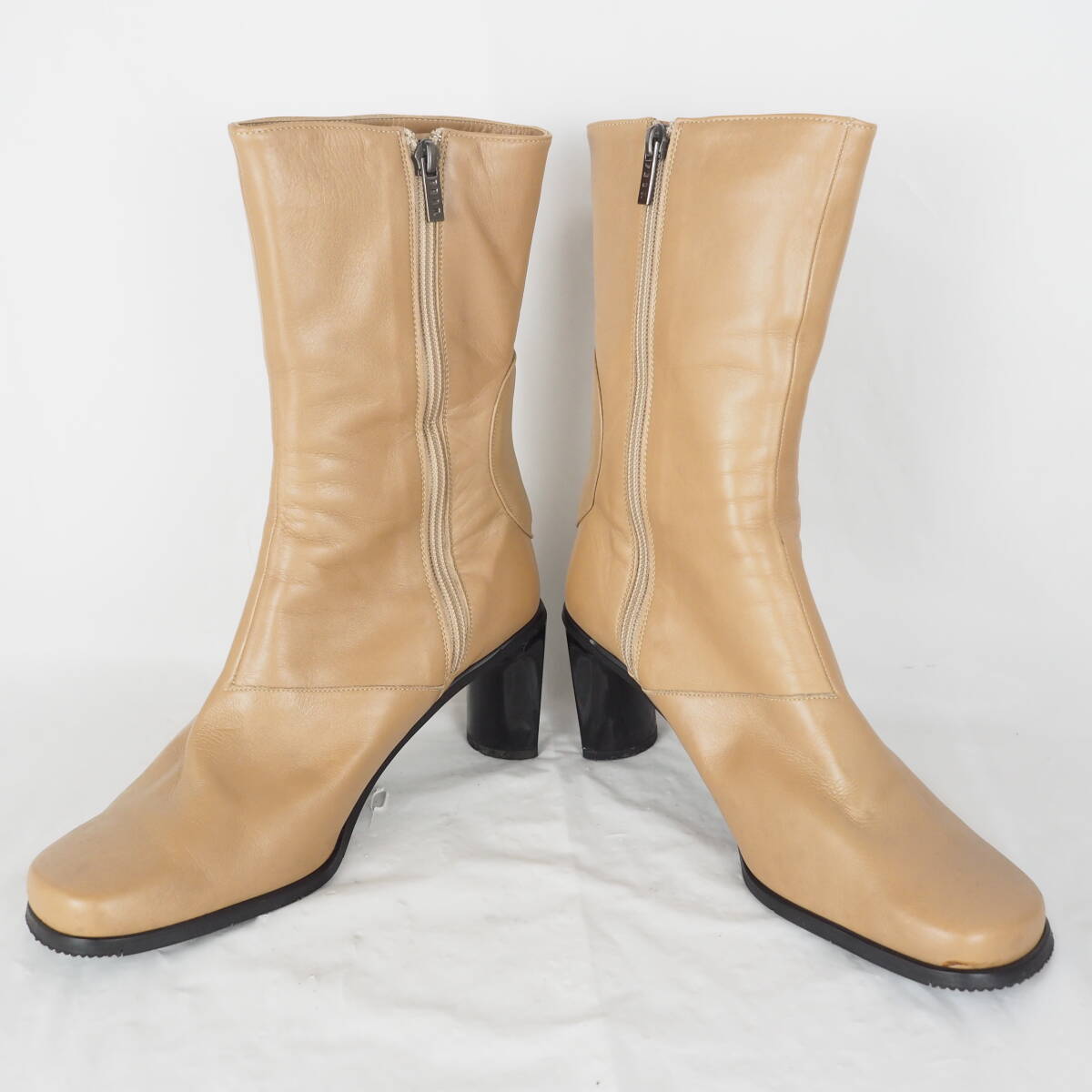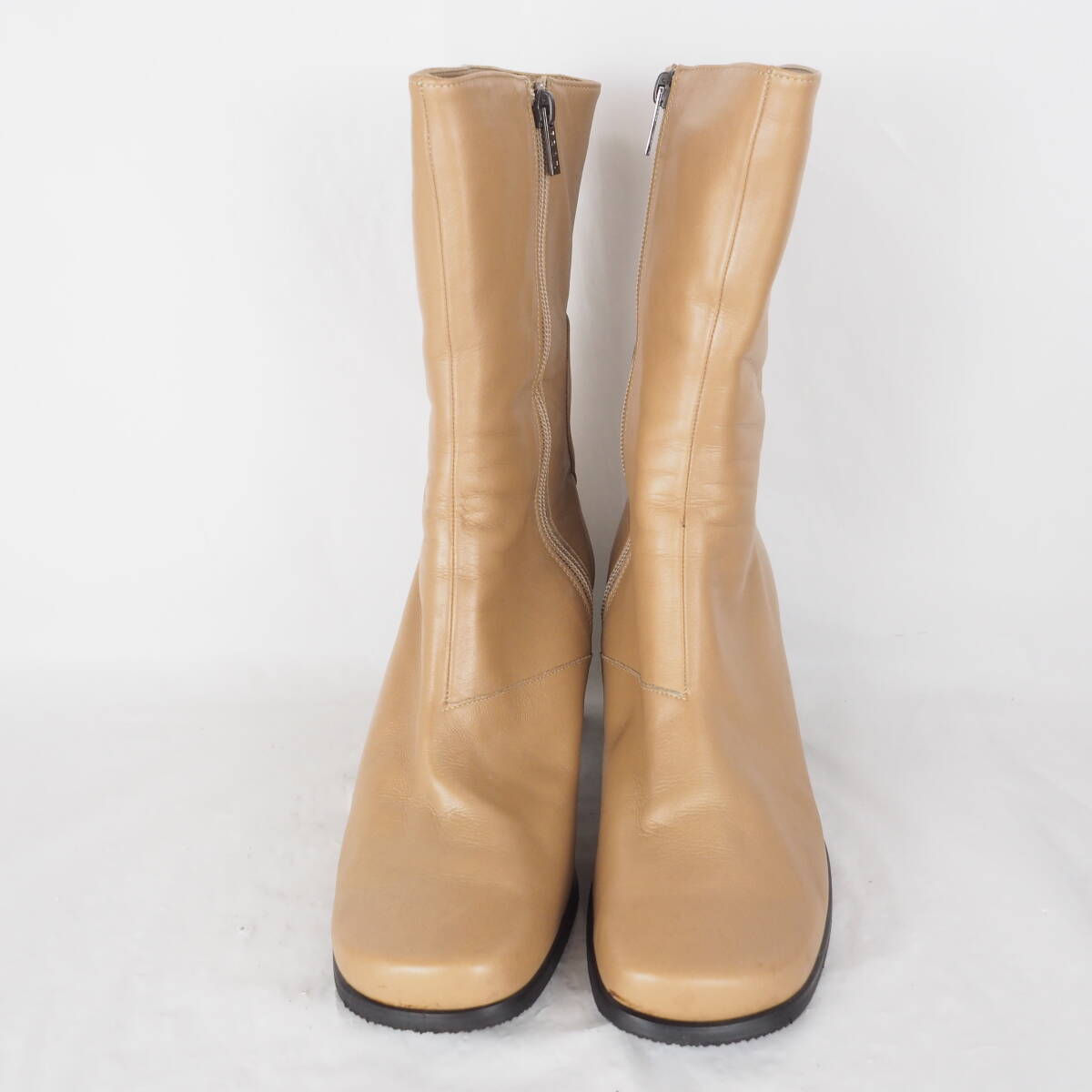 | ページをご覧いただきありがとうございます^^靴、ブーツを中心に出品しております。 柔らかなベージュカラーが上品で、足元を優しい雰囲気にまとめてくれるブーツです。 すっきりとしたシルエットに程よいヒールがあり、スタイルアップしながら歩きやすさも感じられます。 シンプルなデザインで幅広いコーデに合わせやすく、デイリーからお出かけまで活躍します。 ☆商品詳細☆