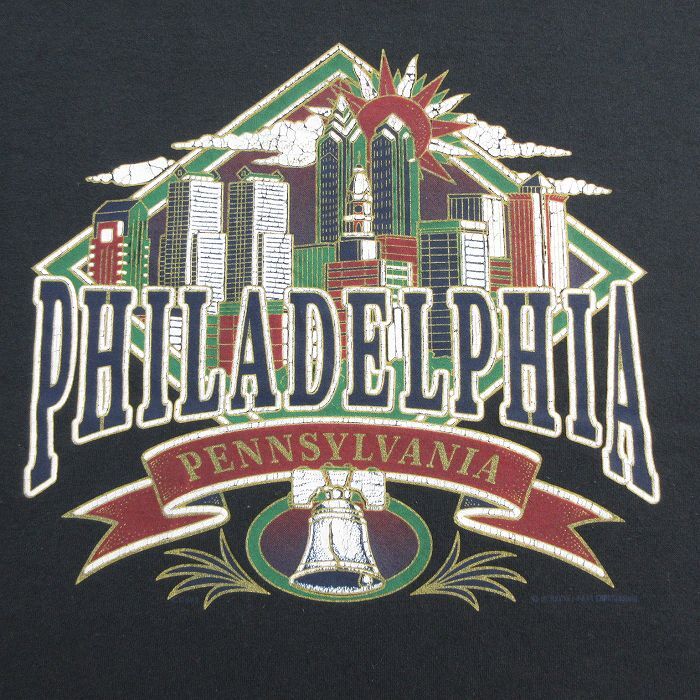 【商品名】 XL★古着 フルーツオブザルーム 半袖 ビンテージ Tシャツ メンズ 00年代 00s フィラデルフィア 大きいサイズ クルーネック 黒