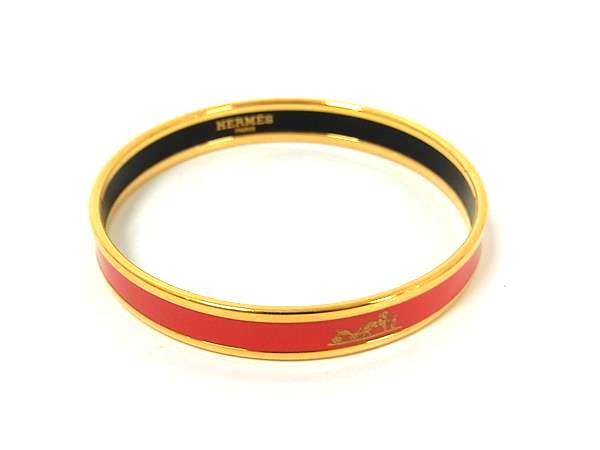 1円 ■美品■ HERMES エルメス エマイユPM ブレスレット バングル アクセサリー レディース レッド系×ゴールド系 FR7797