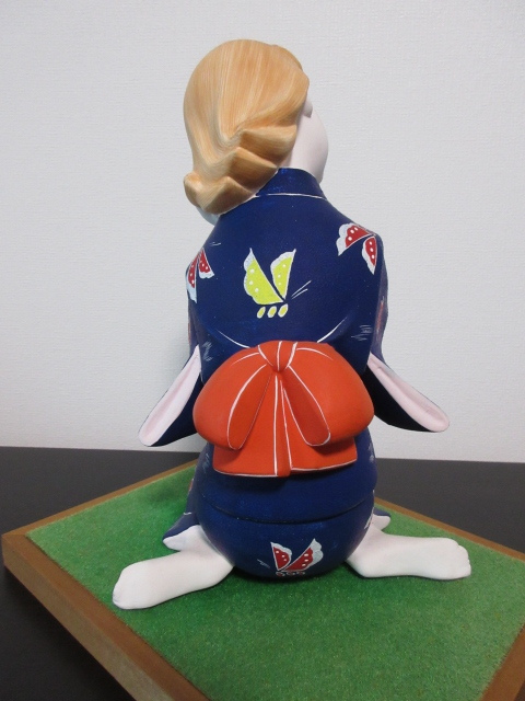 台座の緑色は経年のため色が変わっていますが、人形の色彩は当時のままだと思います。