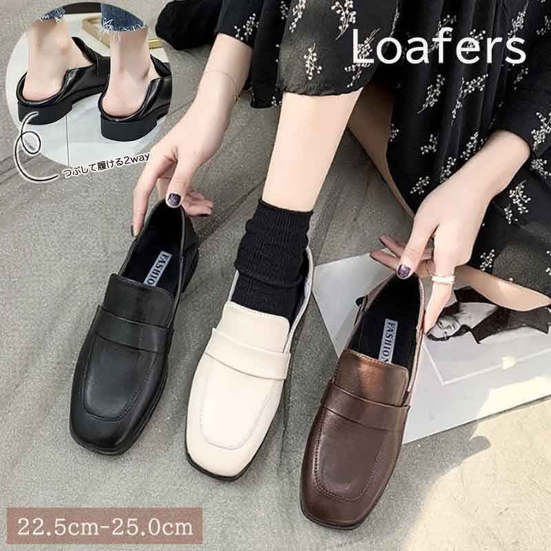 レディース ローファー パンプス 幅広 歩きやすい フラット ソフト 楽ちん2way 軽い 室内 38 黒