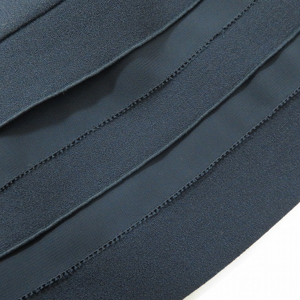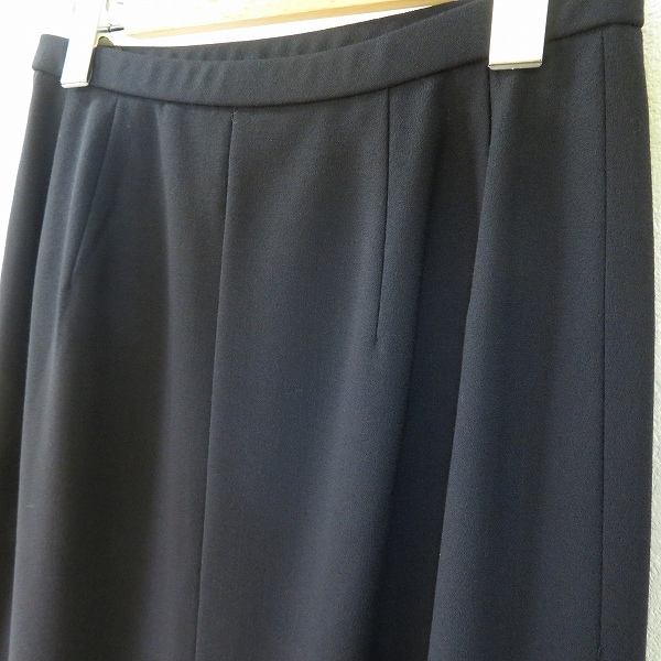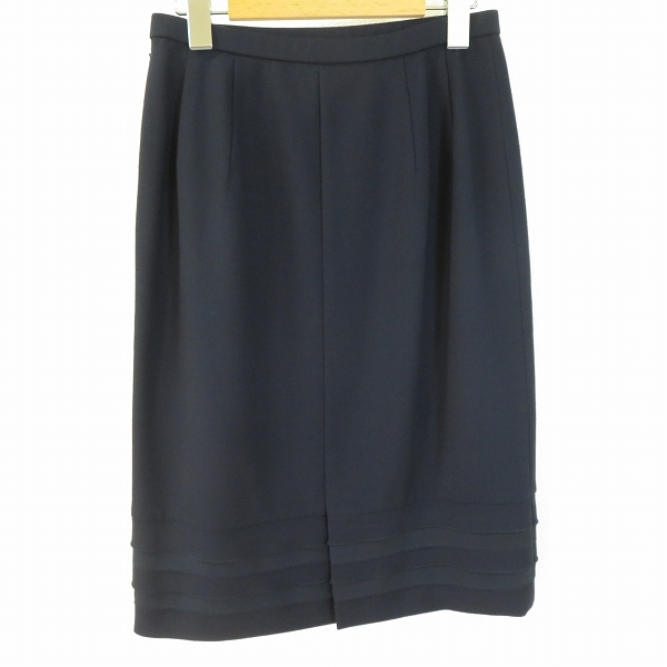 #a レリアン Leilian スカート タイト 9 紺 裾フリル ウール 日本製 934639 k01