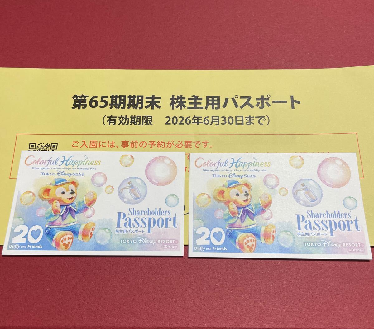 東京ディズニーリゾート 株主用パスポート2枚