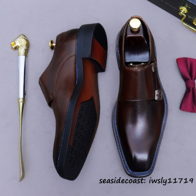 定価10万◆最高級 ダブルモンクストラップ 本革 レザーシューズ ビジネスシューズ 職人手作り 紳士靴 革靴 冠婚葬祭 新品 ブラウン 25.5cm