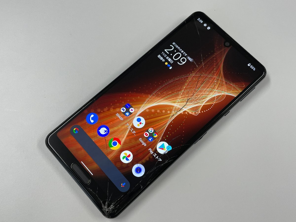 1円 au SHARP AQUOS sense5G SHG03 ブラック SIMロック解除済 ジャンク