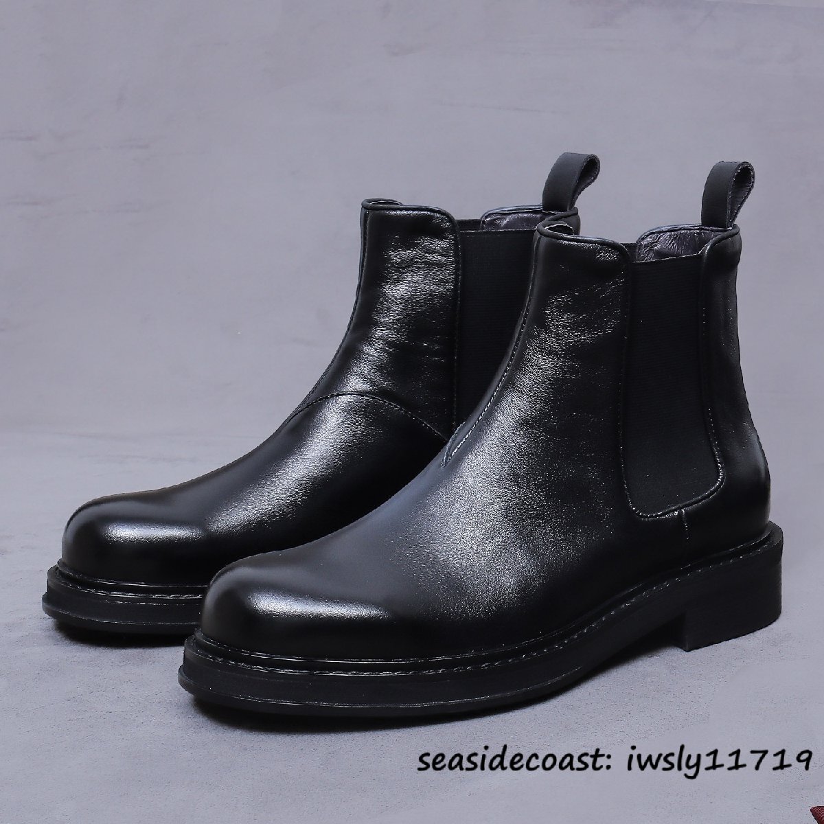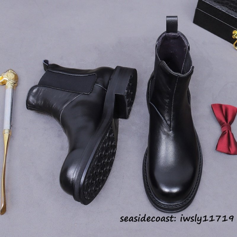 定価11万★本革 レザーブーツ メンズ チェルシーブーツ 厚底 高級牛革 職人手作り マーティンブーツ スリッポン 通勤 ビジネス 皮靴 25.5cm