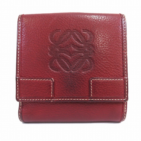 #ae ロエベ LOEWE 財布 二つ折り 赤系 ウォレット アナグラム レザー 本革 ヴィンテージ レディース [943906] k01