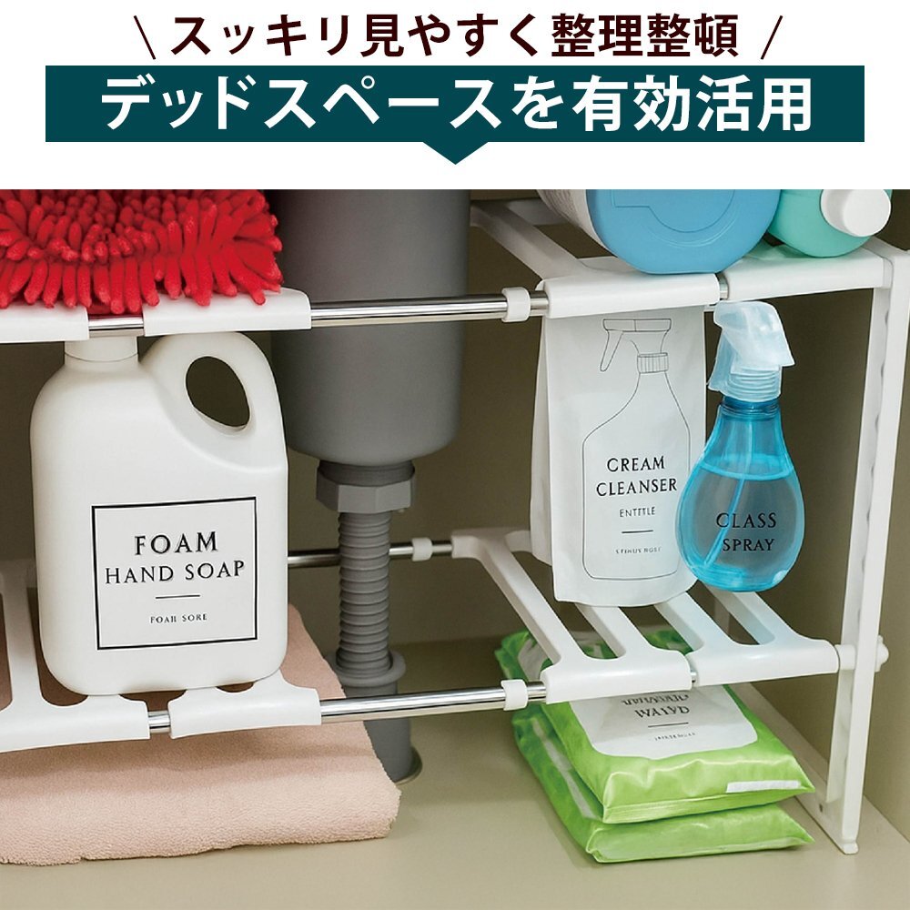 | 伸縮自在のシンク下用ラック。 デッドスペースを有効活用! |