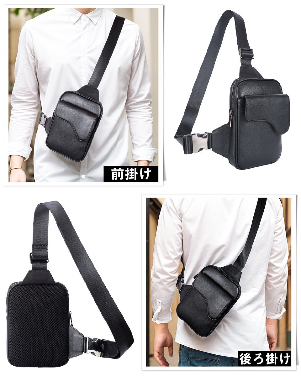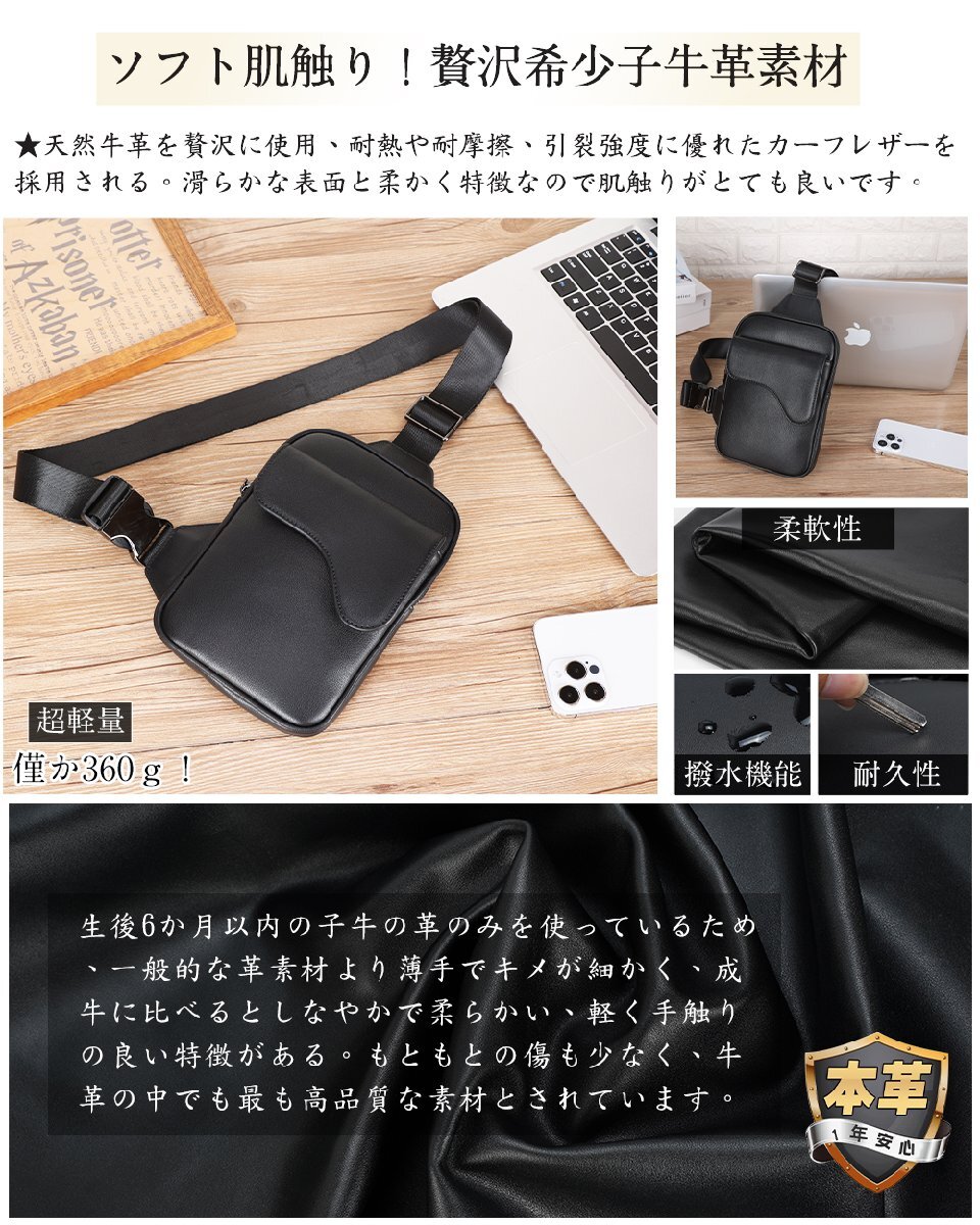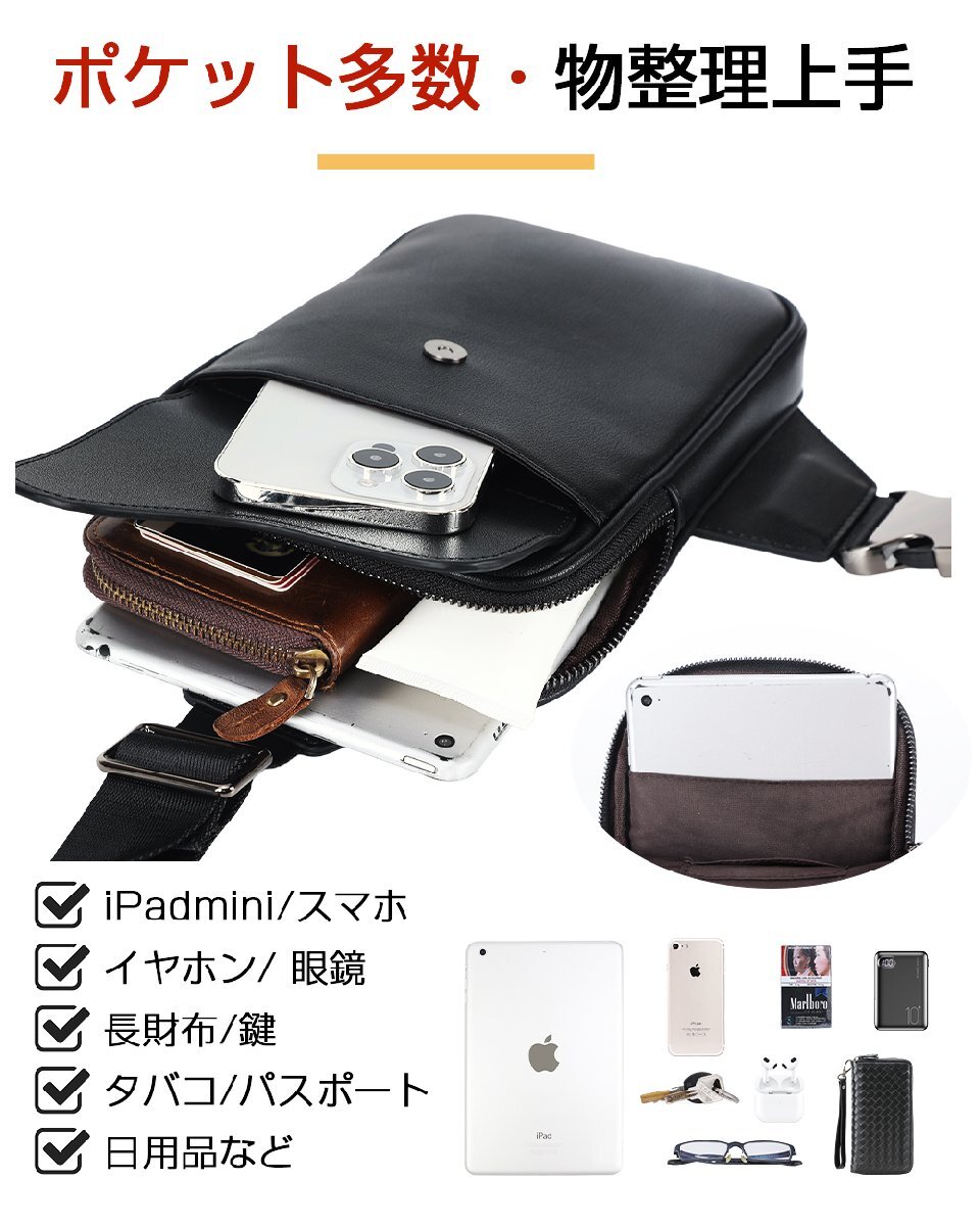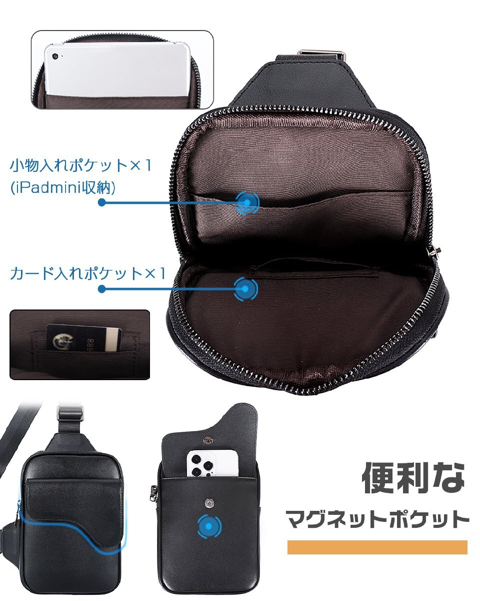 TIDING スマホ対応 本革 ボディバッグ メンズ 小さめ ワンショルダーバッグ 斜め掛け カジュアル ブラック