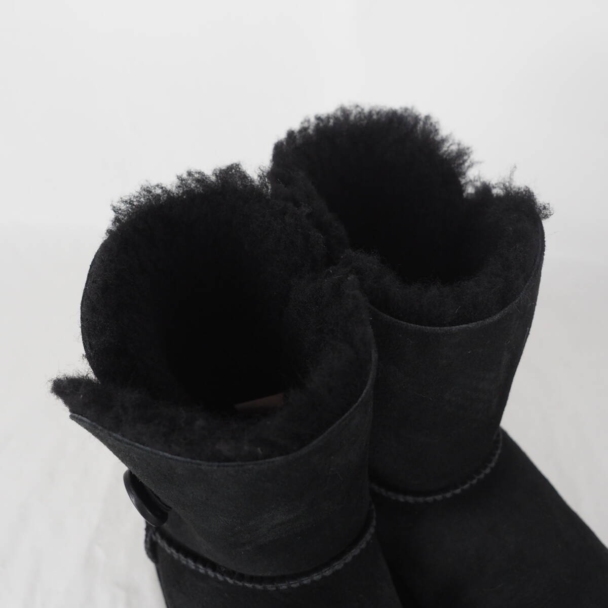 | ページをご覧いただきありがとうございます^^靴、ブーツを中心に出品しております。 ふんわりとしたムートンが足元をやさしく包み込み、寒い季節も快適に過ごせるブーツです。 落ち着いたブラックカラーがシンプルで合わせやすく、さまざまなコーディネートに馴染みます。 軽やかな履き心地で歩きやすく、デイリーからお出かけまで安心してお使いいただける一足です。 ☆商品詳細☆
