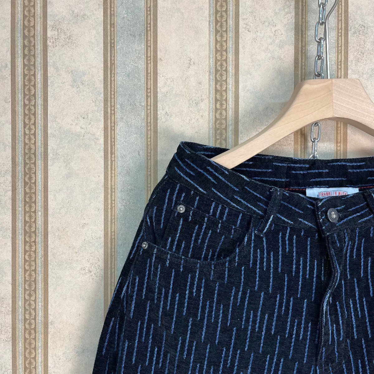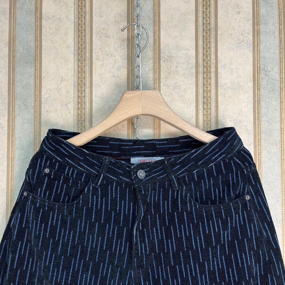 新作 定価4万 FRANKLIN MUSK・アメリカ・ニューヨーク発 ロングパンツ 綿混 快適 通気 ゆったり 総柄 デニムパンツ ストリート 普段着 サイズ30