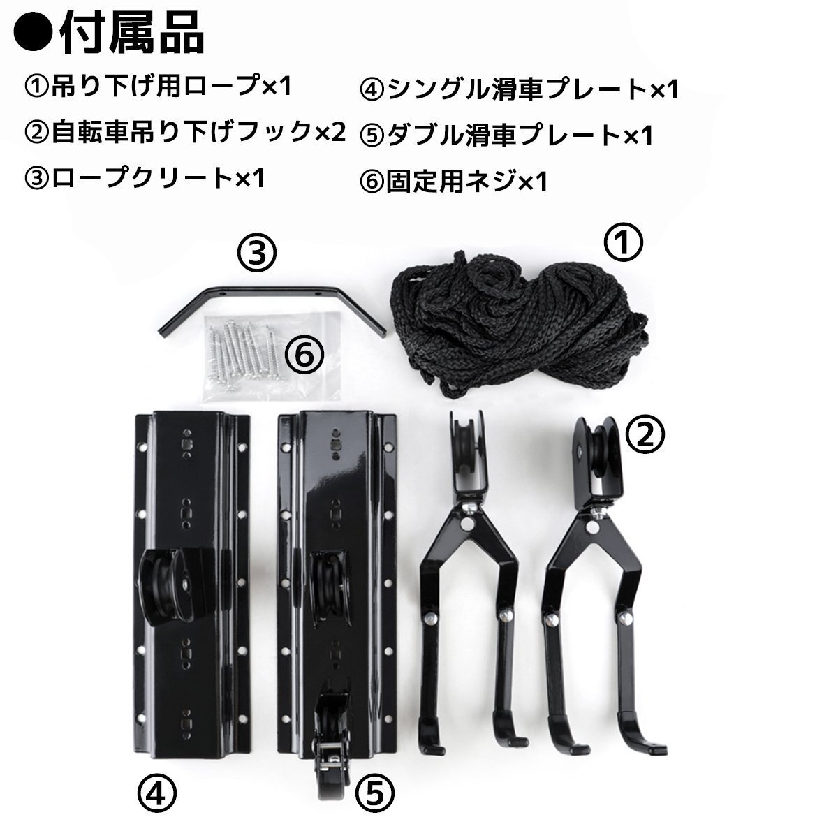 ![]() ■自転車をオシャレにディスプレイ! 自転車置き場が狭く、収納に困っている際や、 自転車をオシャレに飾りたいと思っている方にオススメ! 天吊リフト収納が出来る本商品なら、 お気に入りの自転車をおしゃれにディスプレイ出来ると同時に ガレージ等のスペースを有効活用して省スペースに飾って頂けます! ■サドルとハンドルをフックに引っ掛け、ロープを引くだけで設置可能。 ■フック部にはキズ防止、滑り止め目的のゴムカバー付き 重量(約):1.8kg ロープ長さ(約):12m 耐荷重(約):20kg未満 材質:本体スチール製 英文簡易説明書付き ※取り付けに関しては一度専門業者様へご相談することをおすすめ致します。 ※本商品を使用した事による落下事故・破損等に関する責任は一切負いかねます。予めご了承下さい。 ※剛性が弱いと脱落することがありますので、取り付け場所の材質・強度などを考慮の上、お取り付けください。 ※工具は付属しておりません。