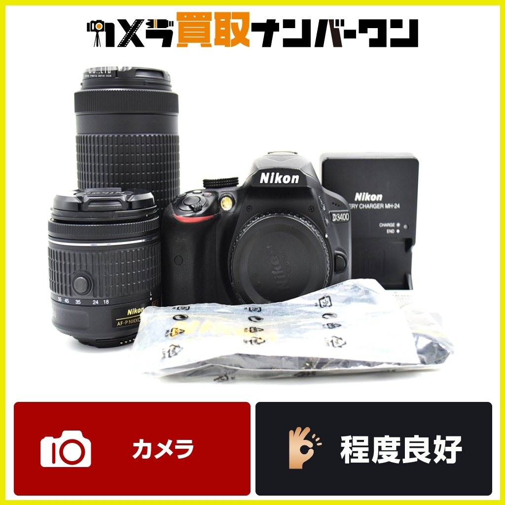 | 【程度良好☆】ニコン D3400 ダブルズームレンズキット 初心者 入門用 定番モデル 一眼レフ | |||||