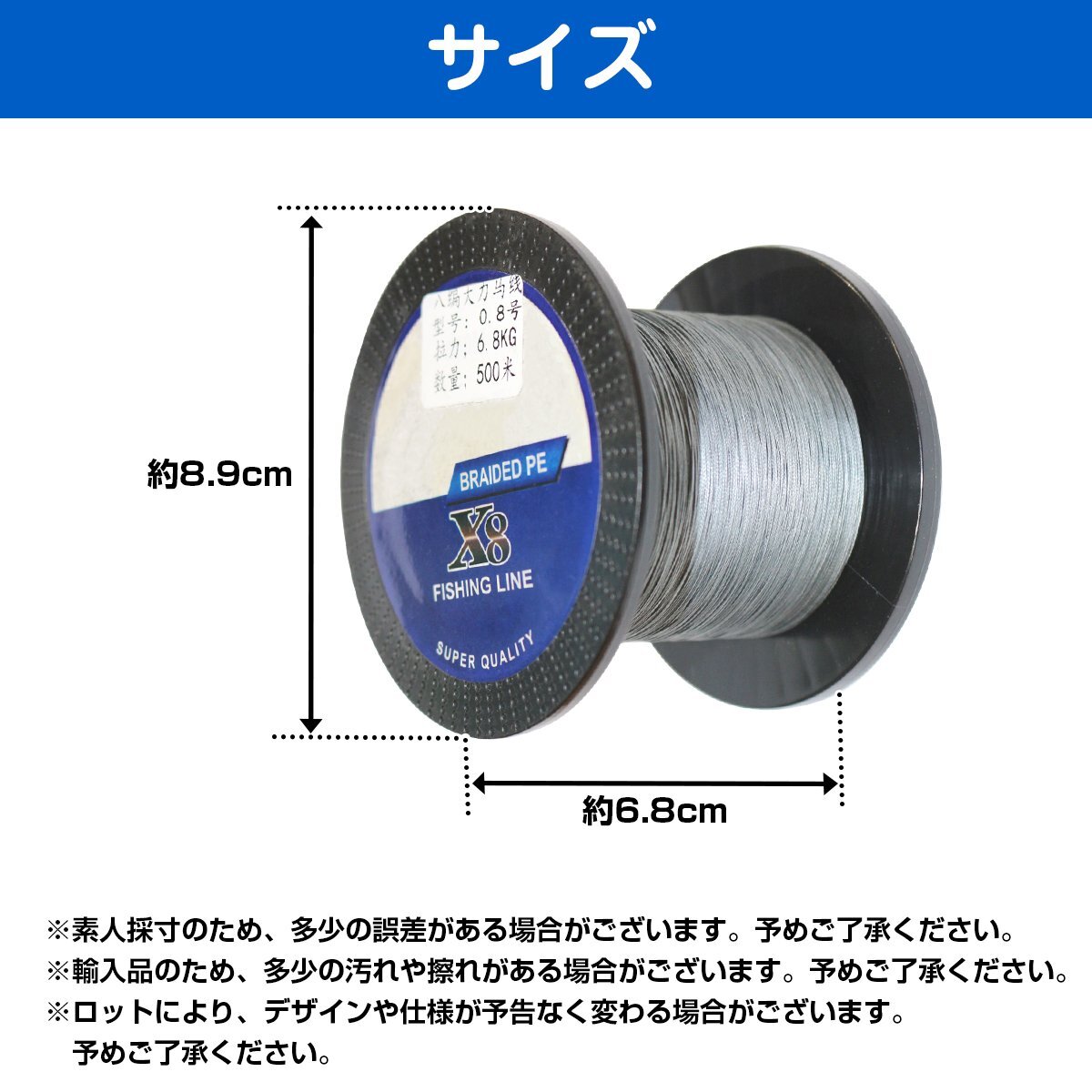 500m PEライン 0.8号/16lb 灰色 グレー 8編 投げ釣り 船釣り エギング ジギング タイラバ 船 深海 ルアー シーバス 釣り糸 リール
