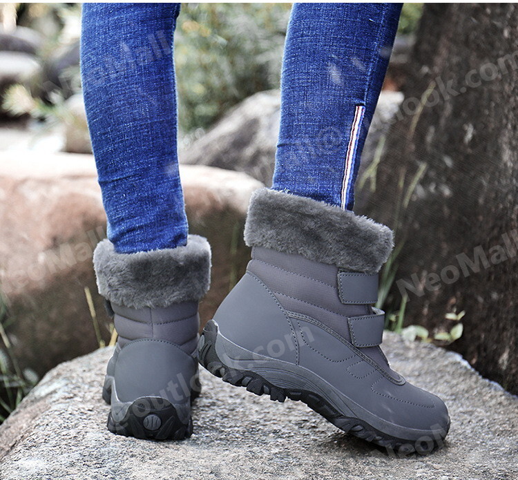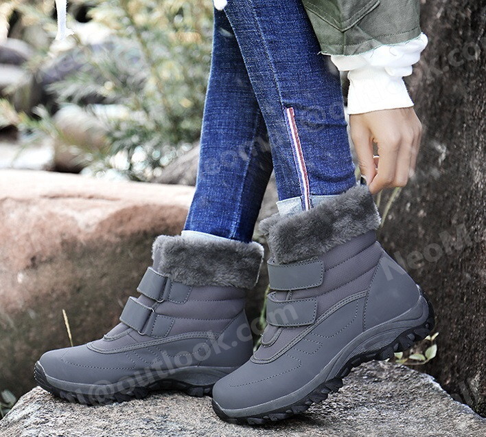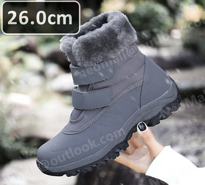 レディース スノーシューズ 【971】 グレー 26.0cm ムートンブーツ スニーカー ウィンターブーツ 裏起毛 防水 防寒 防滑 冬用靴 綿靴