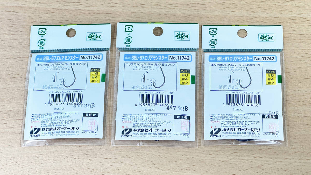 ■新品開封品■オーナーはり カルティバ SBL-67 エリアモンスター #2を3個 / 全品 9本から10本 1本おまけ / 大型魚釣り用フック