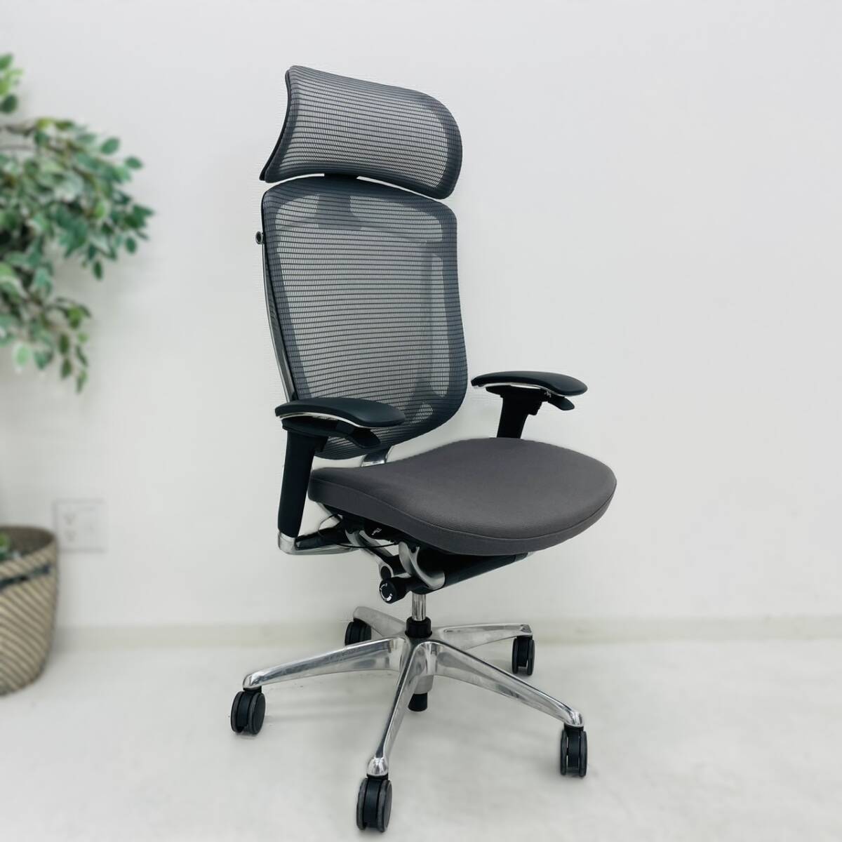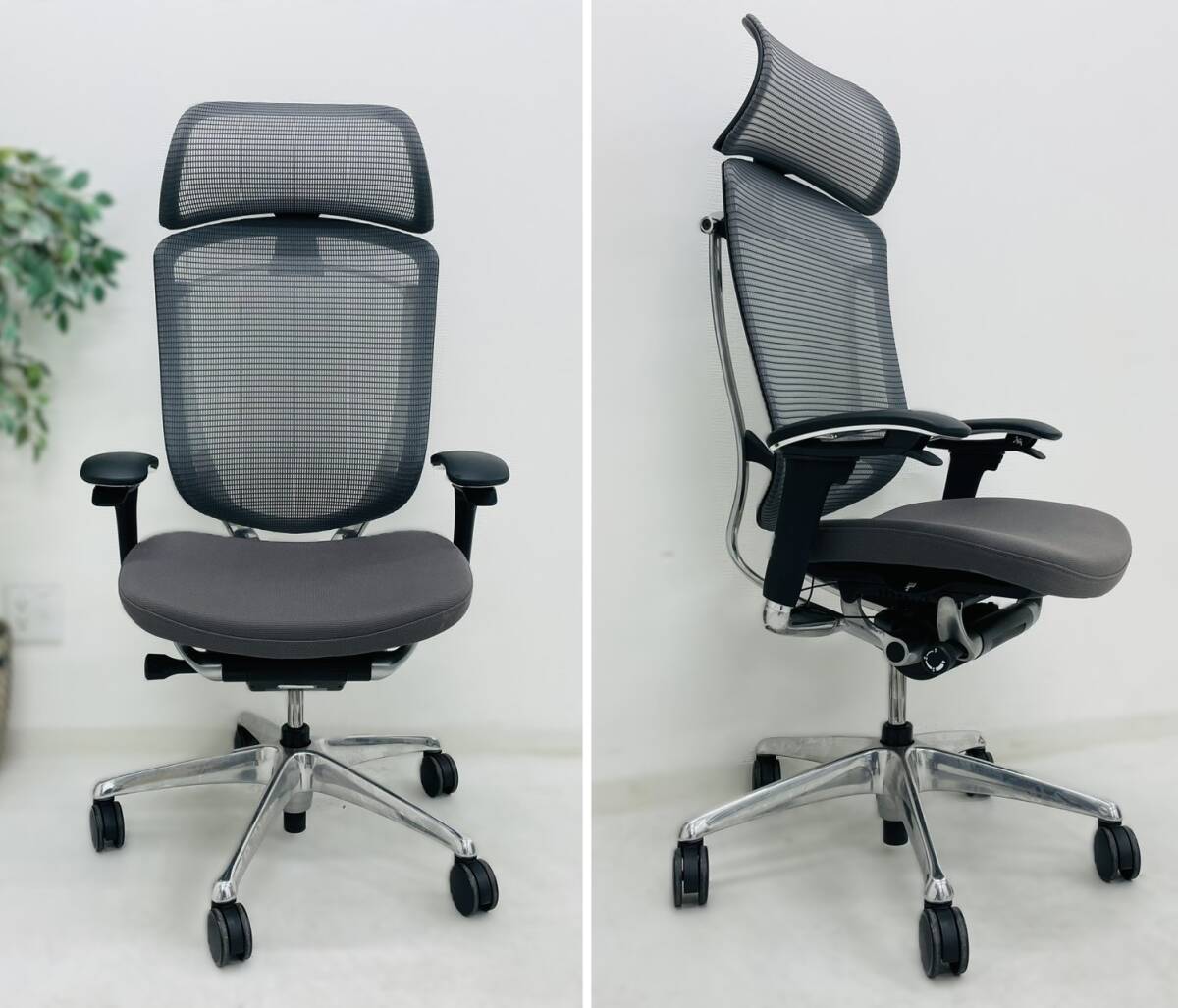 | ■仕様:エクストラハイバック 大型固定ヘッドレスト クッション アジャストアーム ポリッシュフレーム ブラックボディ ハンガー付 |