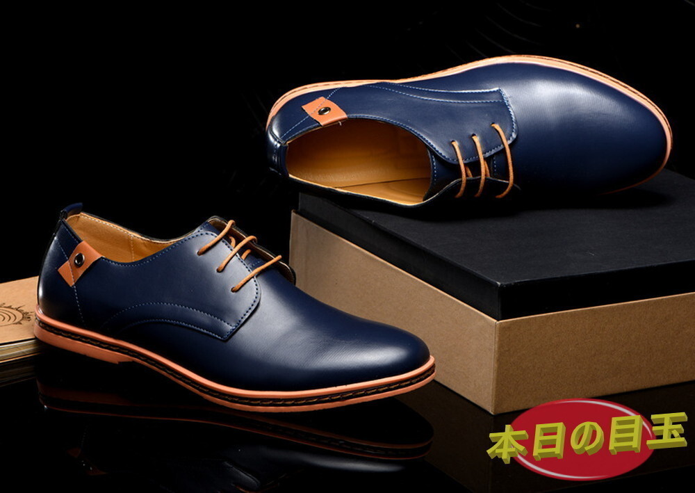 1円~ ☆ メンズ ビジネス レザー シューズ ネイビー サイズ 26.5cm 革靴 靴 カジュアル 屈曲性 通勤 軽量 仕事 【610】