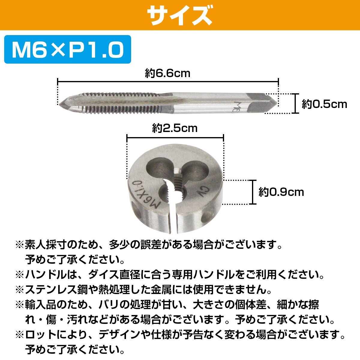 『M6×P1.0』タップダイス セット 目立て ネジ 山 修正 めねじ 再生 ねじ 穴 修復 補強 耐久性向上 雌ネジ 補修 工具 キット