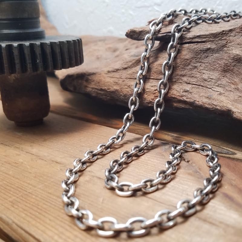 燻し銀加工したsterling silverのネックレスチェーンです。