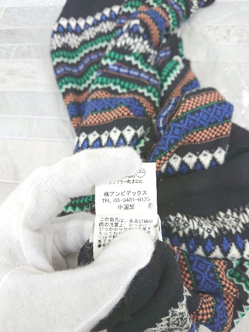◇ ⊇ bulle de savon 総柄 長袖 コットン ニット ポンチョ サイズF ブラック ブルー グリーン マルチ レディース メンズ P