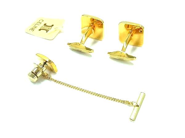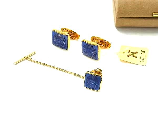 CELINE セリーヌ マカダム カフリンクス カフスボタン タイタック ネクタイピン アクセサリー ビジネス 紳士 メンズ ブルー系 DK7593