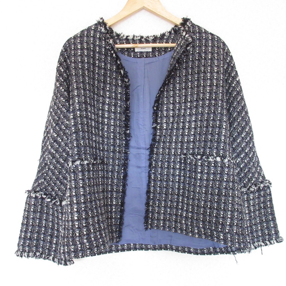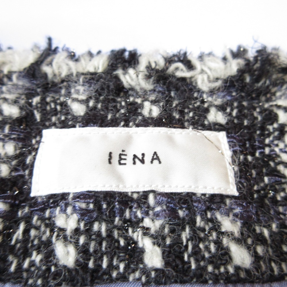 美品 23AW IENA イエナ ノーカラー ツイードジャケット 23010900200040 36 ブラック