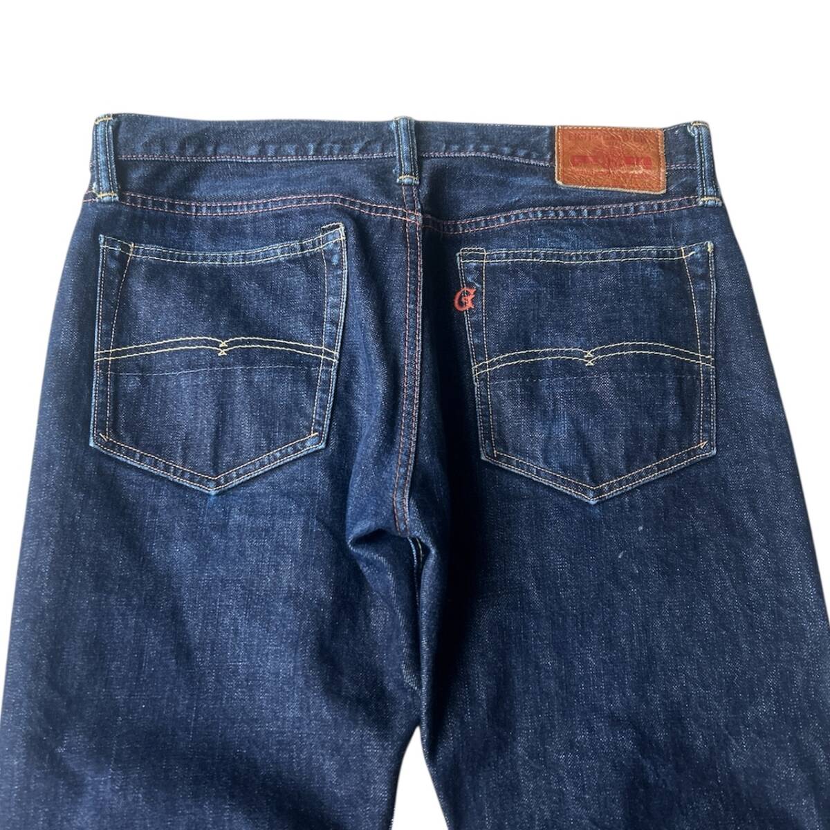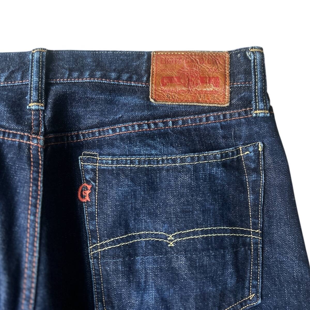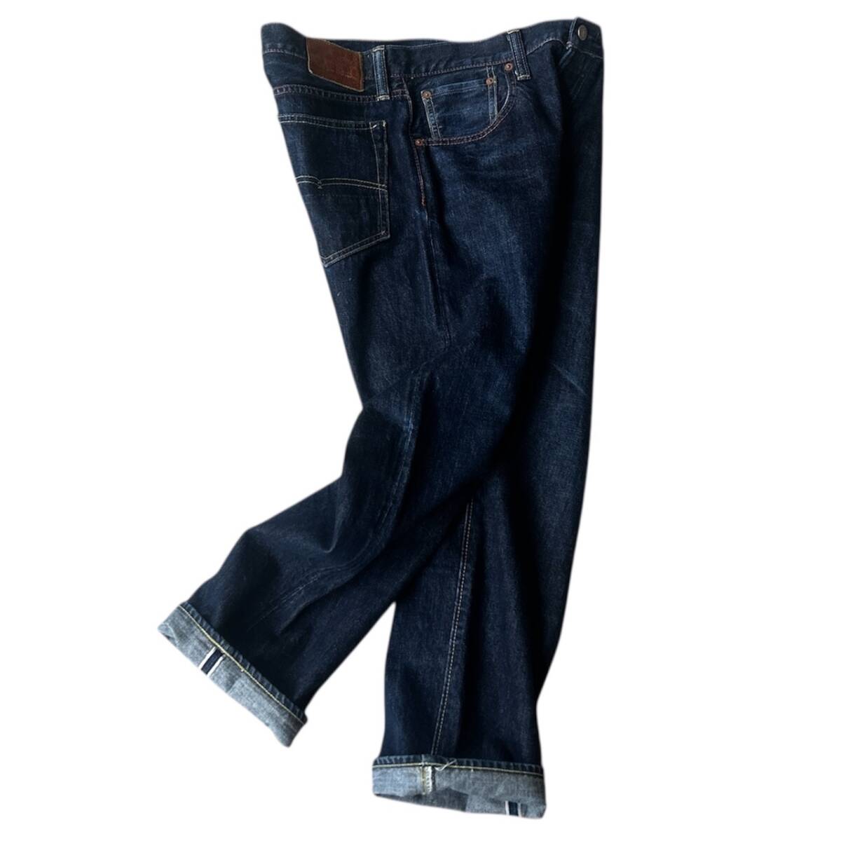 耳付きのセルビッチデニムで、裾はオリジナルチェーンステッチです。