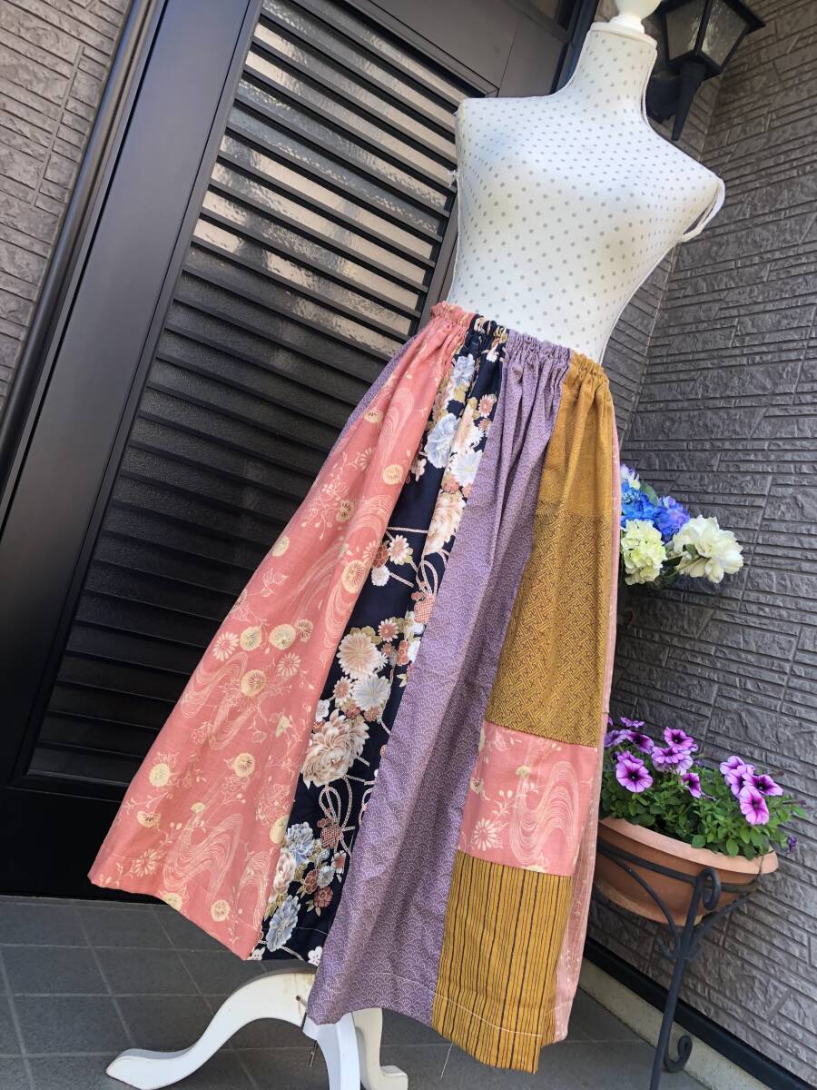 新品 ハンドメイド 綿100% パッチワーク フレアスカート・ロングスカート 送料230円 お花柄