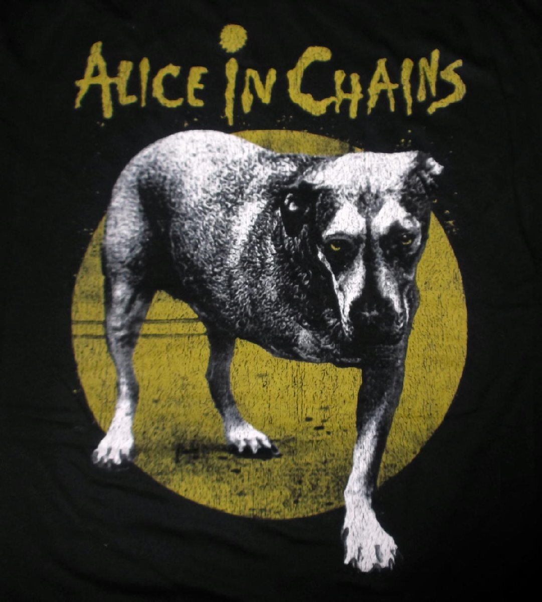 正規品 1987年にアメリカはシアトルで結成され、ニルヴァーナ、パール・ジャムらと共に、 グランジ/オルタナティブ ムーブメントの担い手として支持される「アリス・イン・チェインズ」のTシャツ「TRIPOD 」です。 95年リリース、トリプル・プラチナムを獲得した4thアルバム「ALICE IN CHAINS」のジャケット、 キニーをしょっちゅう追い回していた獰猛な3本足の犬「Triopod(※3本足の意)」をフィーチャリング, アルバムリリース時に日本では自主規制となったカバーアート!! 正規品・新品 XLサイズ 体格の良い方,大きめに着こなしたい方に。肩幅57cm,着丈76cm,身幅59cm 郵メール便送料¥250(代引き不可・紛失補償なし) ACE CAFE LONDON、LUCKY13、MOONEYES、Sailor Jerry等~アメキャラ・企業ロゴ等ライセンスTシャツ、RATFINK関連品、バンドTシャツ、等取り扱っております。 ** 他にも色々出品中です。 CWBT cwktw cwlpm IWTS | |||||||