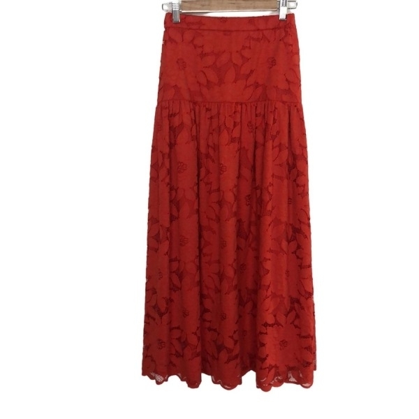グレースコンチネンタル GRACE CONTINENTAL ロングスカート サイズ36 S - レッド レディース マキシ丈/花柄/レース/ウエストゴム ボトムス