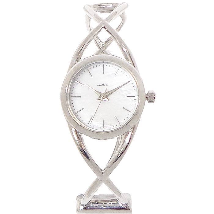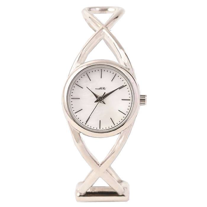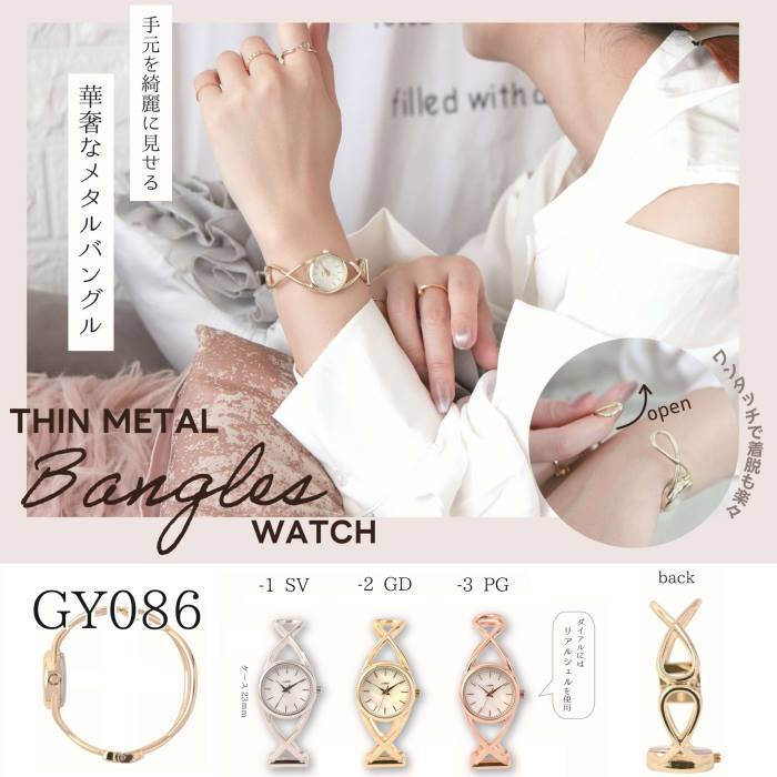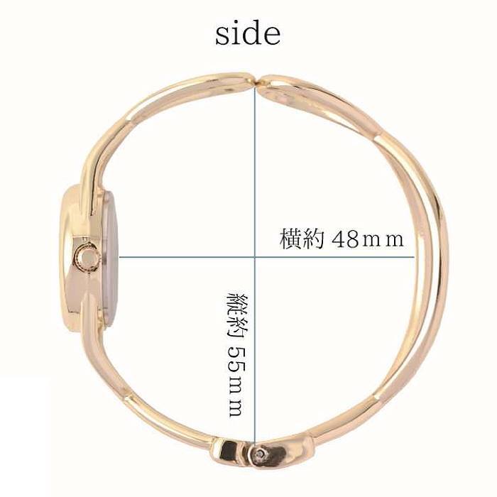 手元を綺麗に見せる華奢な?おしゃれなバングルウォッチです♪ 普通のベルトとは違い、開放感、軽量感、涼感のある腕時計です♪ バングルベルトは、開閉で装着・脱着がカンタンです♪ 従って、ベルト調節は必要が無く、即、御使用できます。♪ フェイスは、シェルMOPマザーオブパール(白蝶貝)文字盤を使用し、高級感、清涼感、清潔華やかな印象になります♪ |