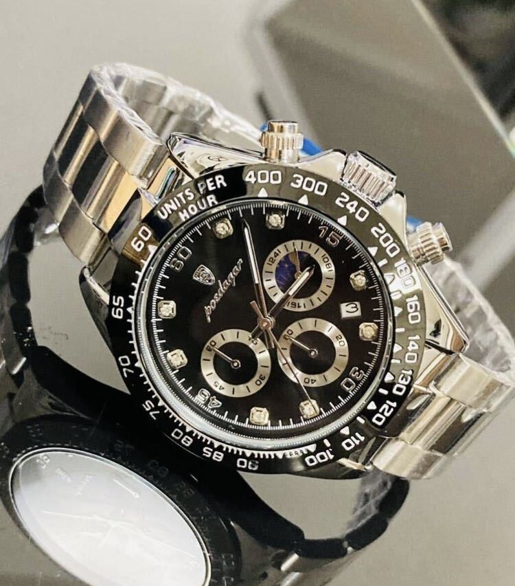 新作 メンズ腕時計 ビジネスウォッチ スポーツ腕時計 シルバー 2024年モデル ストップウォッチ ジルコニア