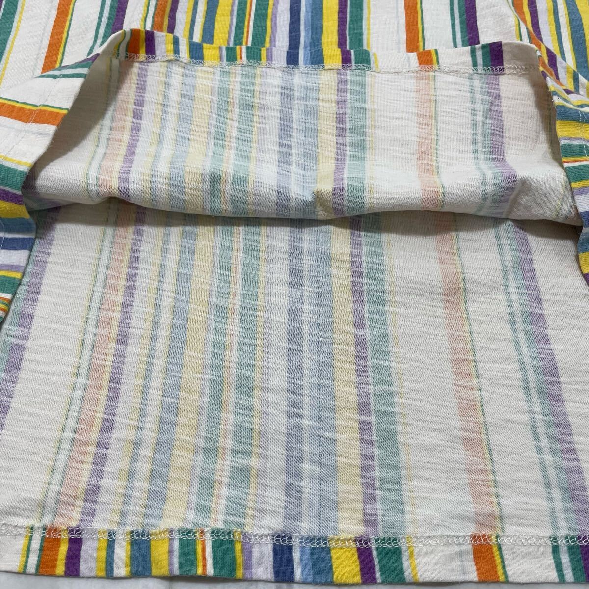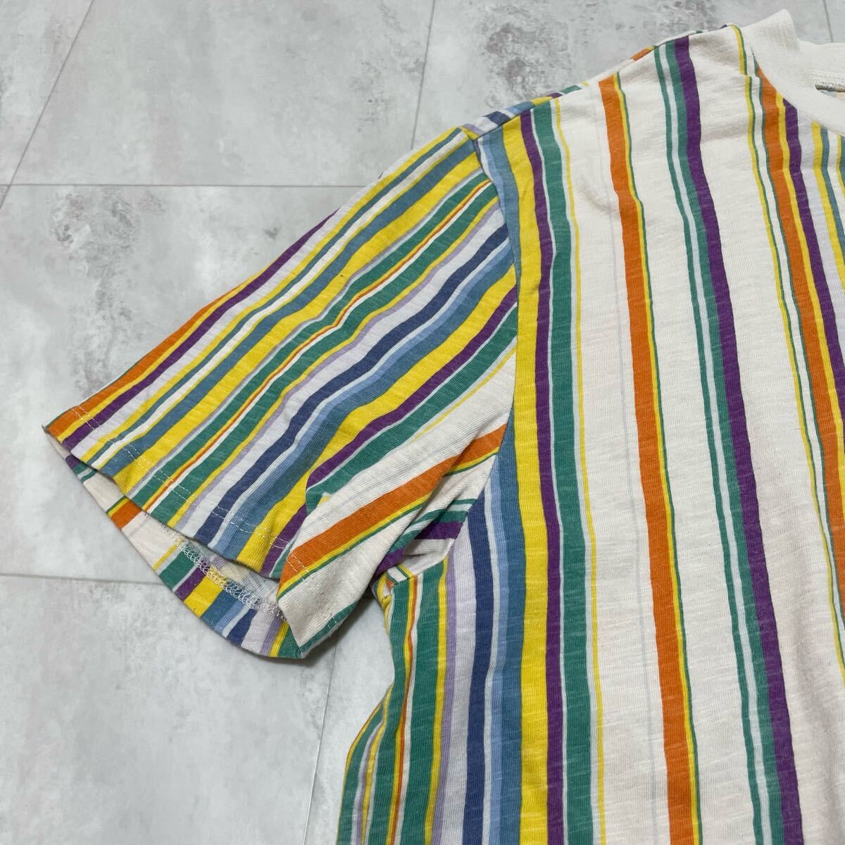 GUESS ゲス Los angels Tシャツ T-shirt TEE 半袖 ストライプ マルチカラー 刺繍ロゴ ヴィンテージ サイズM 玉SS3479