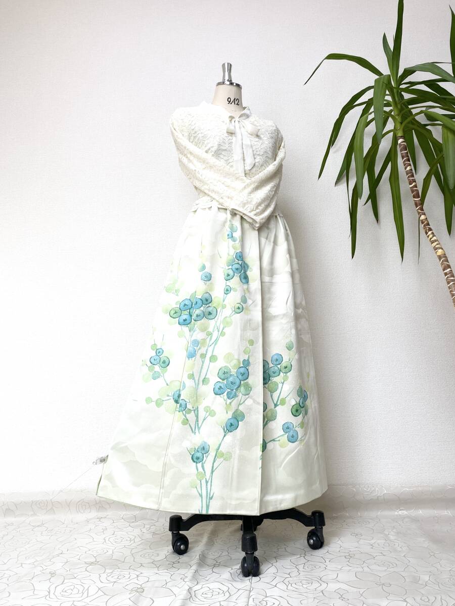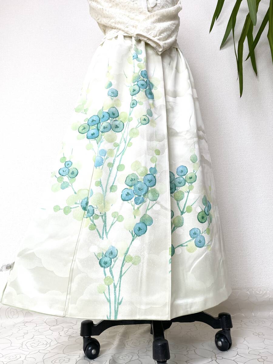 大人可愛いセレブ着物スカートフリーサイズ着物リメイクウエストゴムロングスカートハンドメイド送料込みNO.5181