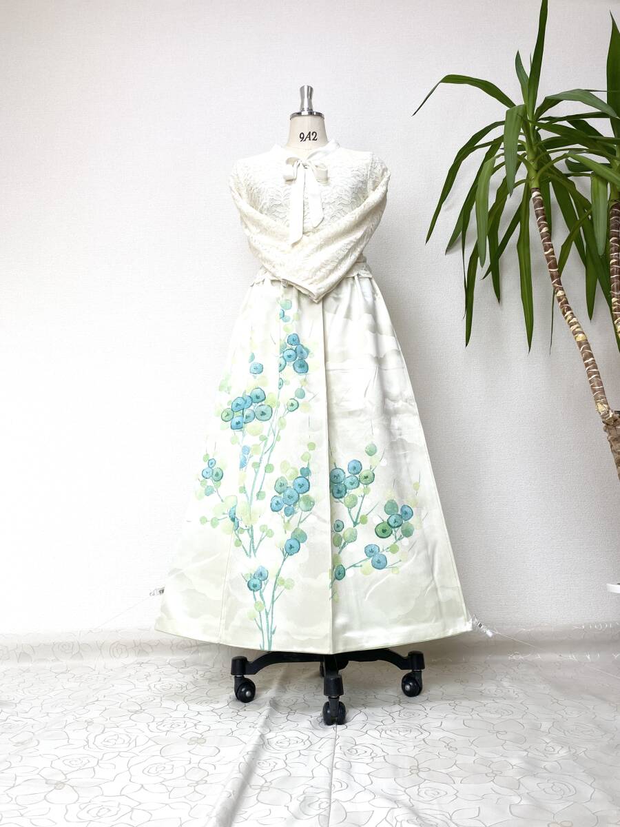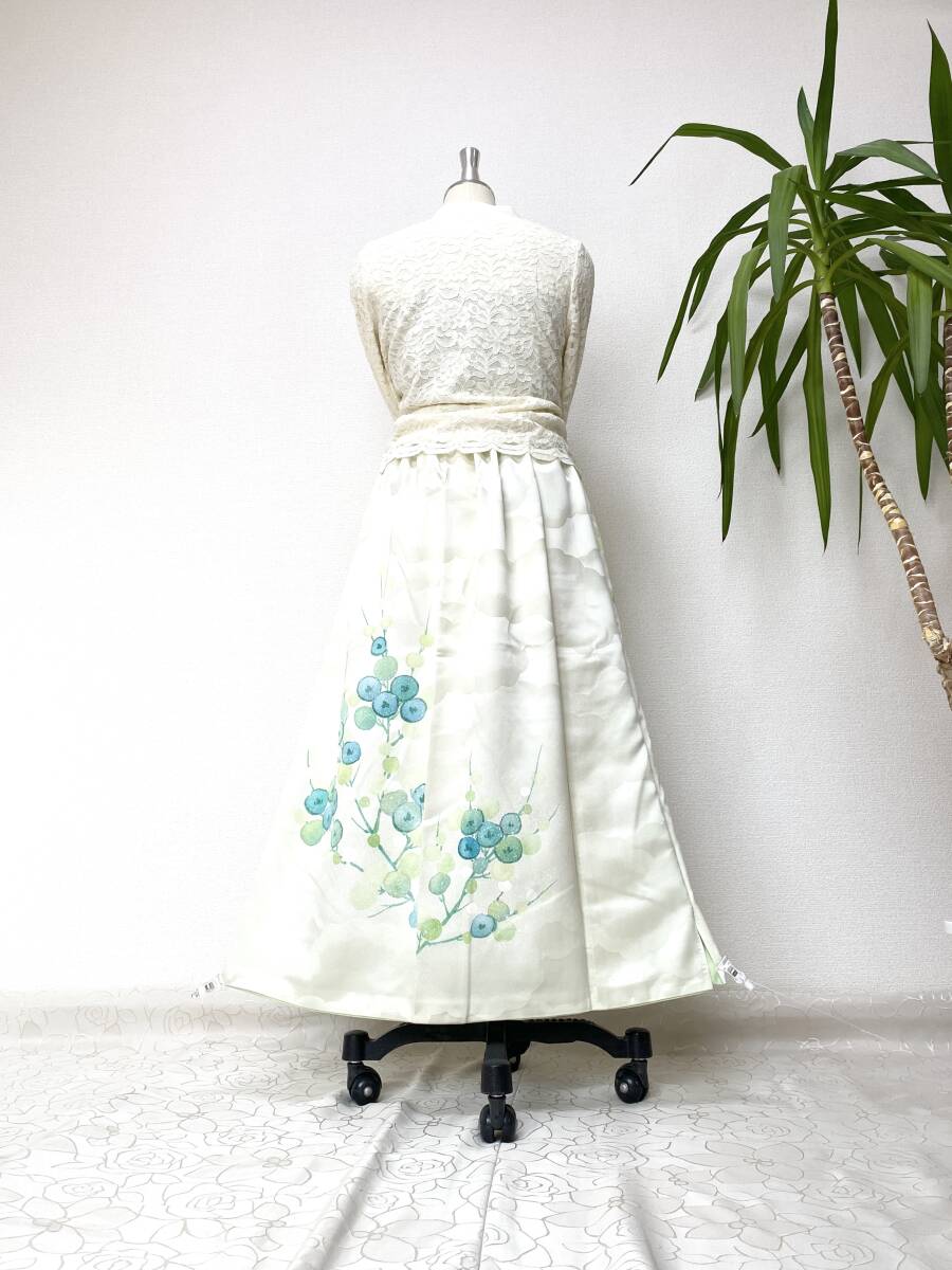 着物をリメイクして作製したウエストゴムロングドレススカートフリーサイズです