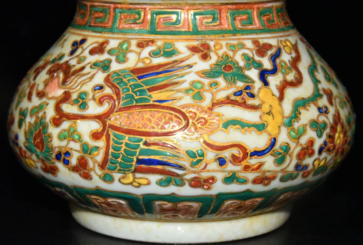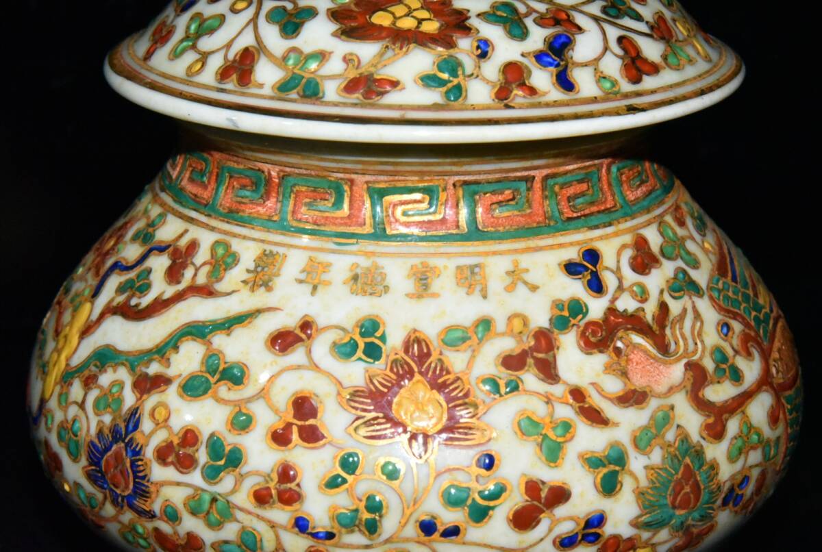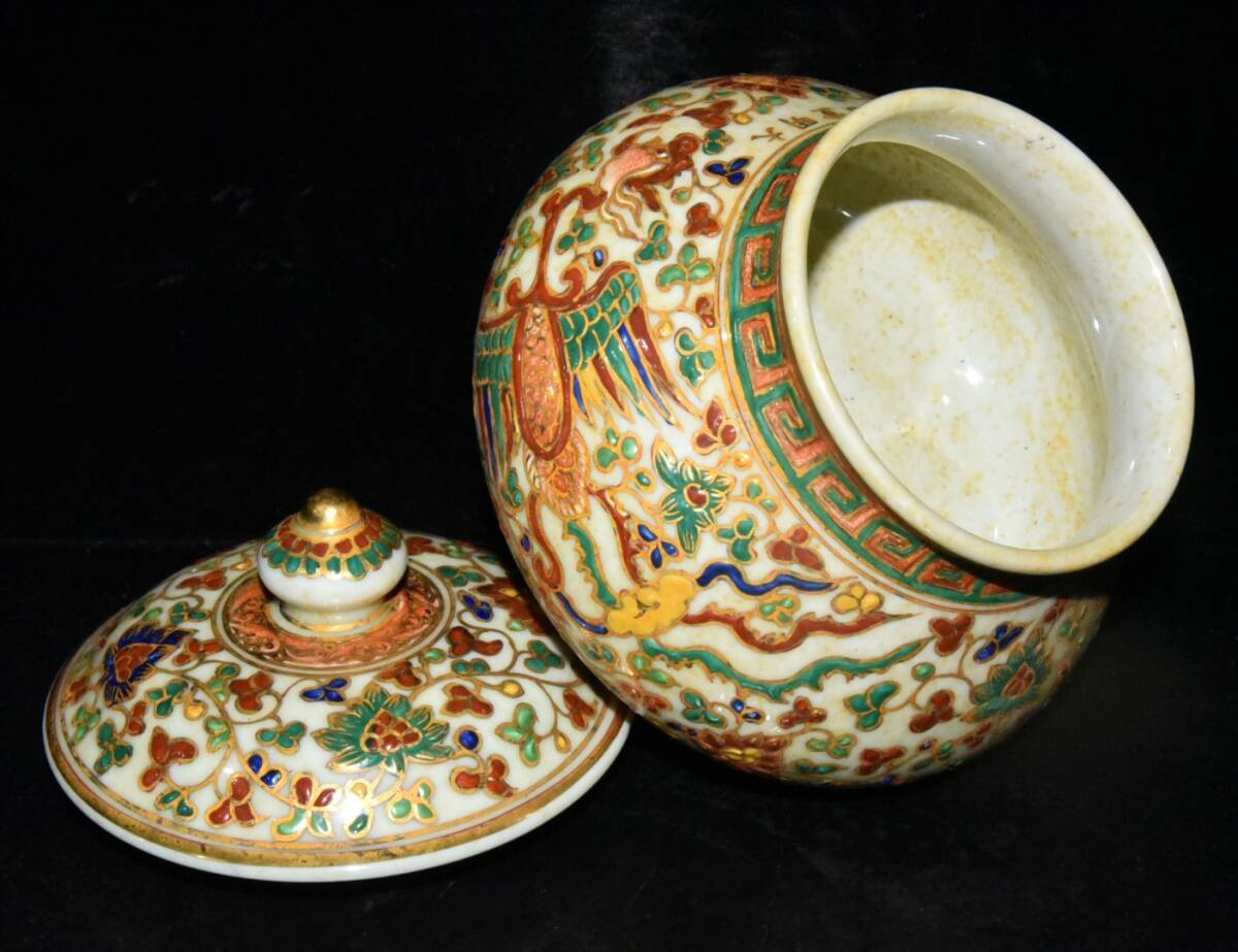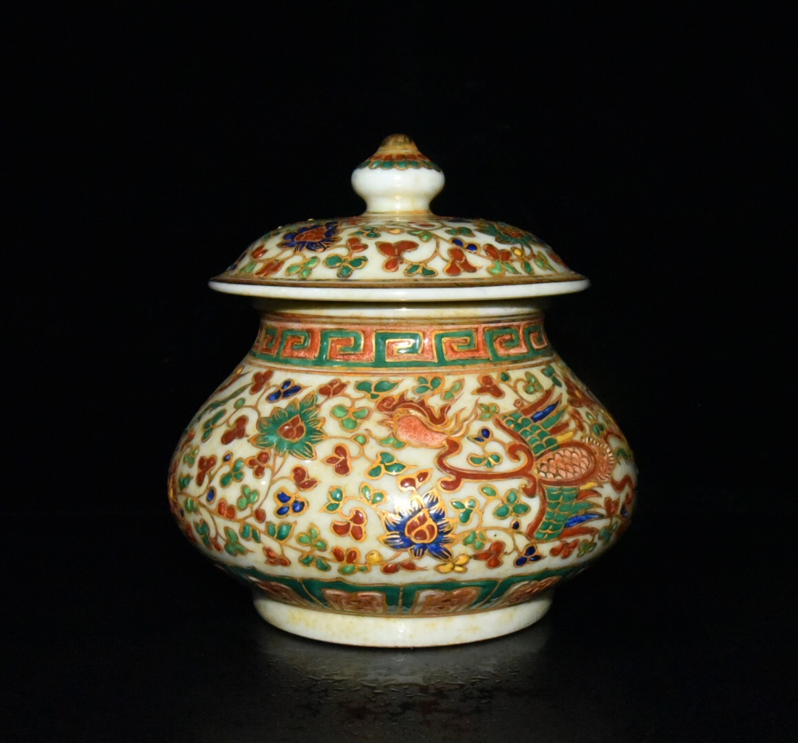 【超珍館蔵】明 宣德年製款 古陶瓷品 五彩 描金 鳳紋 蓋罐 置物 古賞物 古美術品 稀少珍蔵品