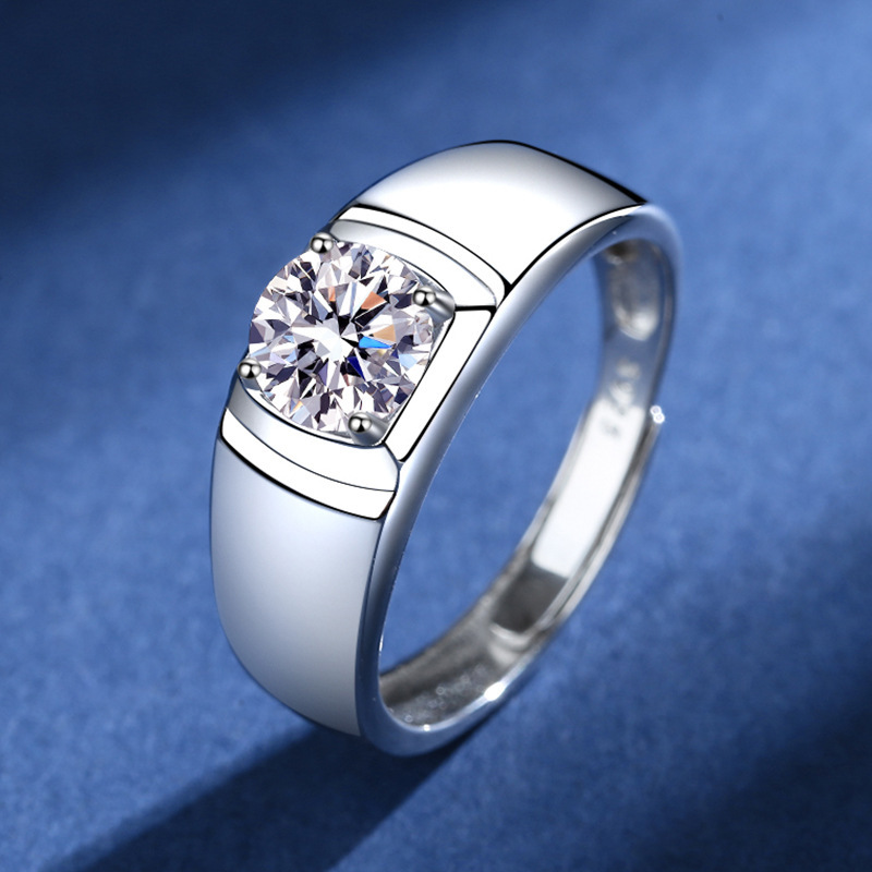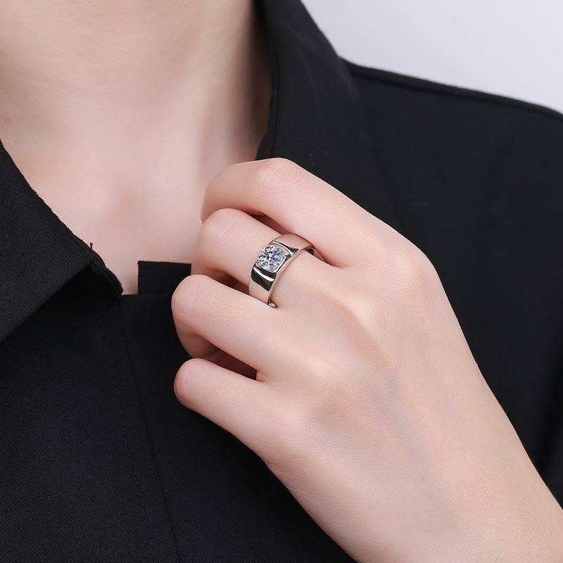 大人気新品メンズ リング 指輪 モアッサナイト 1.0ct 6.5mm VVS1 シルバー925 鑑定書 保証書 人工ダイヤモンド モアサナイト