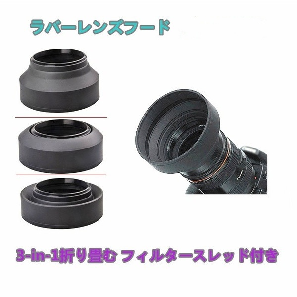 送料無料 ラバーレンズフード 口径 72mm 折り畳み可能 ワイド レンズ フード マルチ ラバー シリコン黒 フィルター スレッド 付き