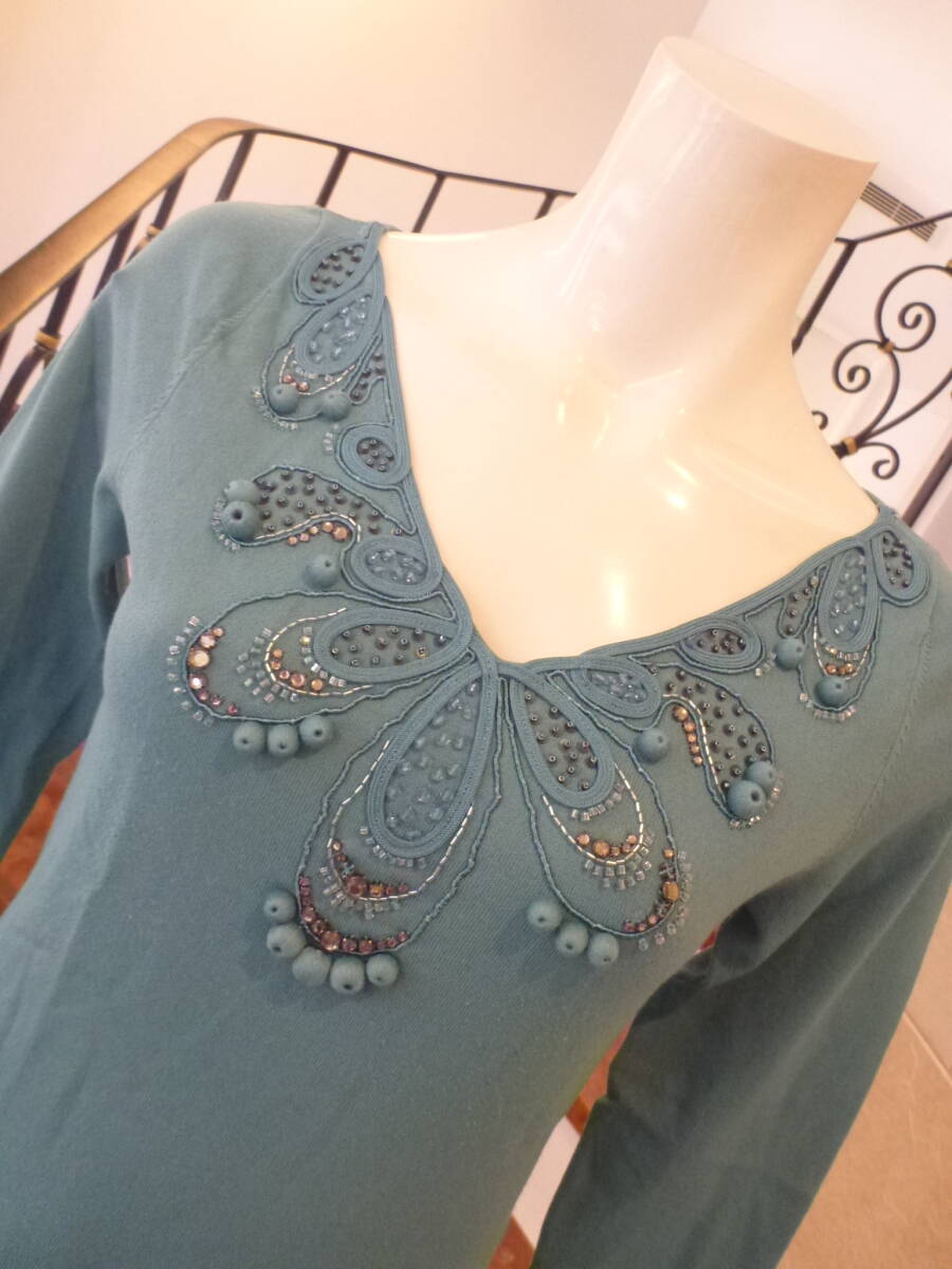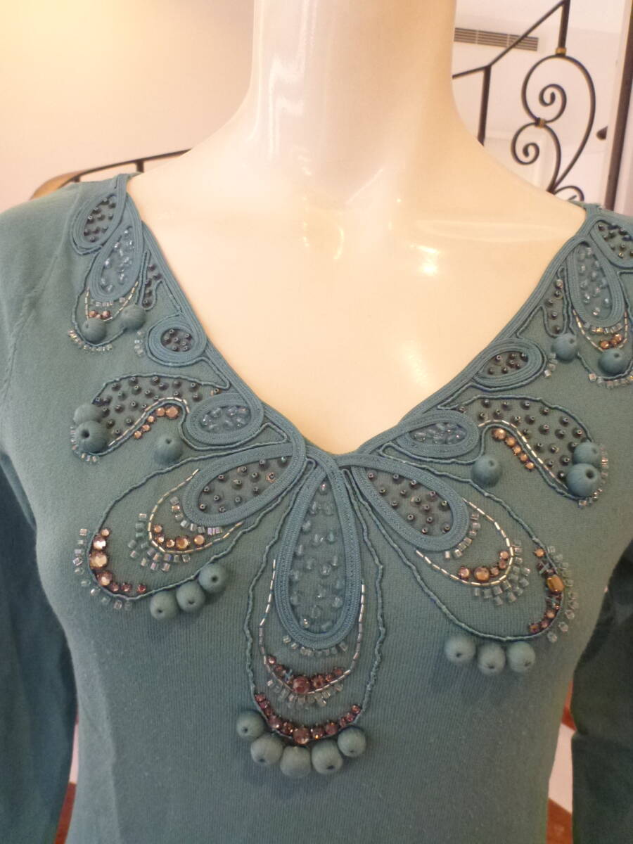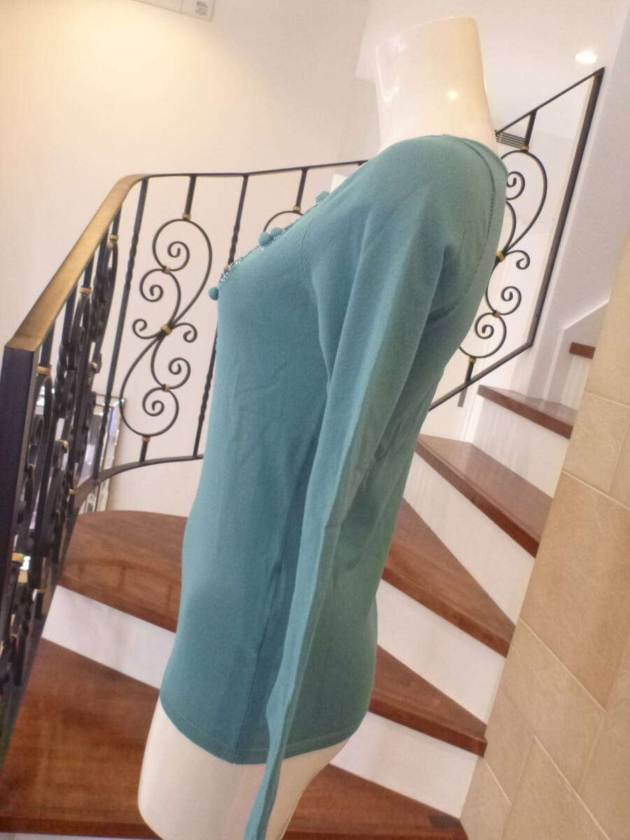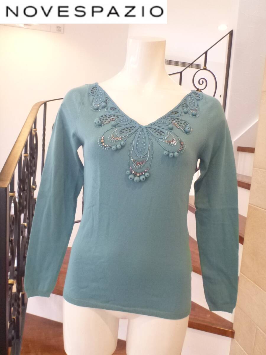 3万 超美品 NOVESPAZIO ノーベスパジオ★ターコイズ系 豪華ビジュー 長袖セーター 38 M相当