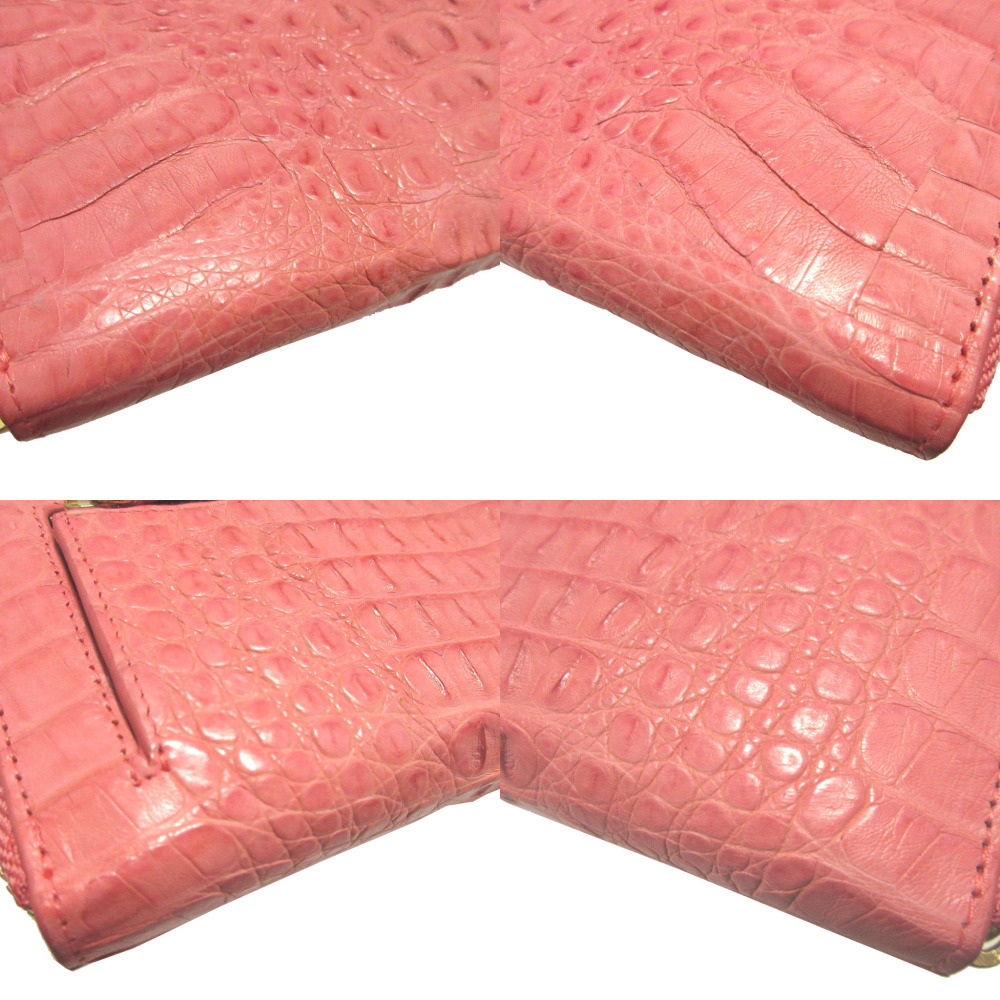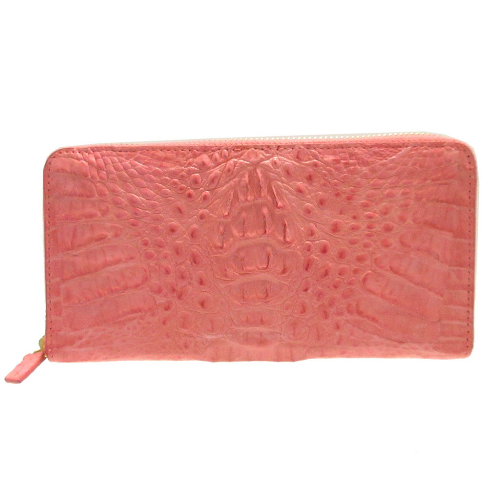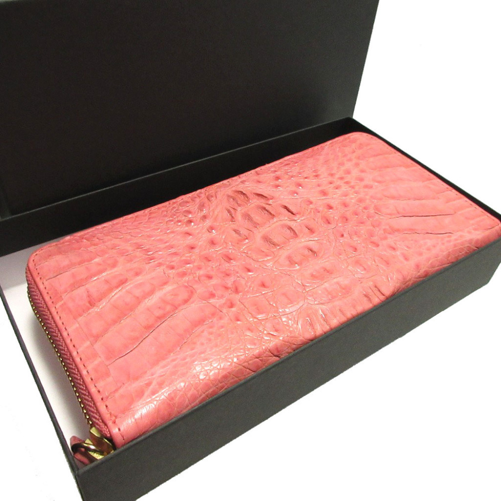 未使用 カイマン クロコダイル クロコ CJN0477APKMT ピンク ラウンドファスナー長財布 財布 0605-3 CAIMAN CROCODILE