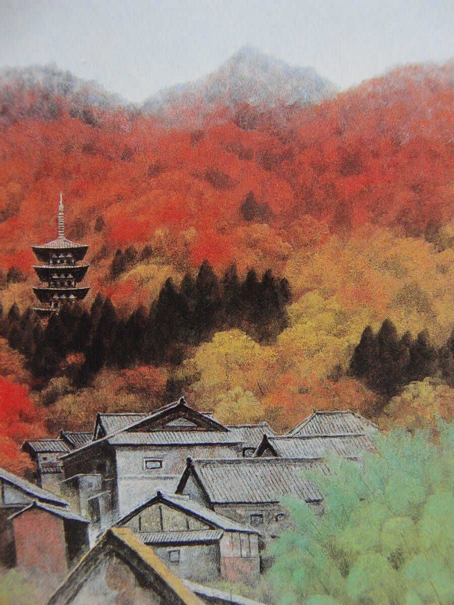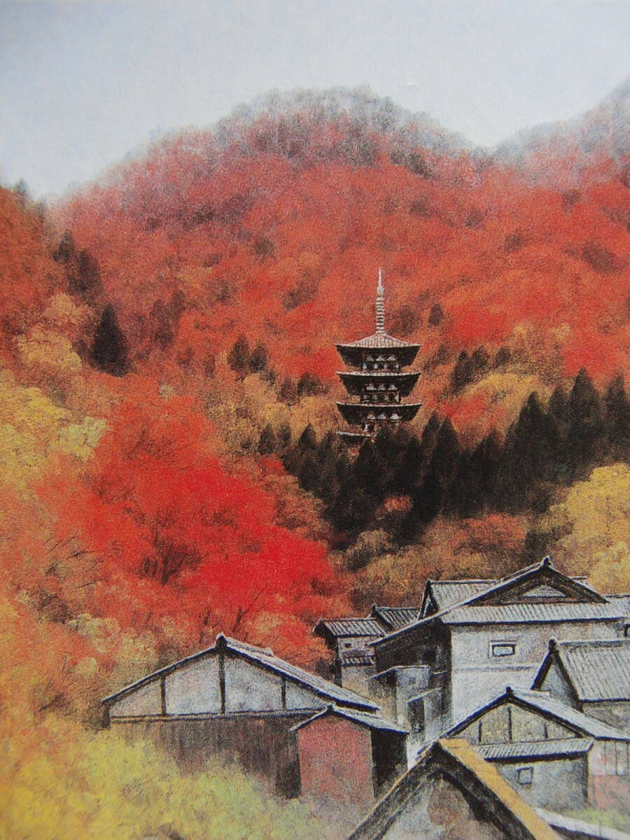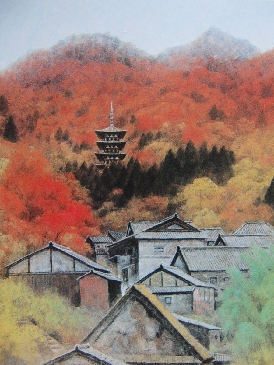 久保 嶺爾「明日香岡寺秋塔」 人気作品、希少画集・額装画、日本製新品額縁、状態良好、送料無料