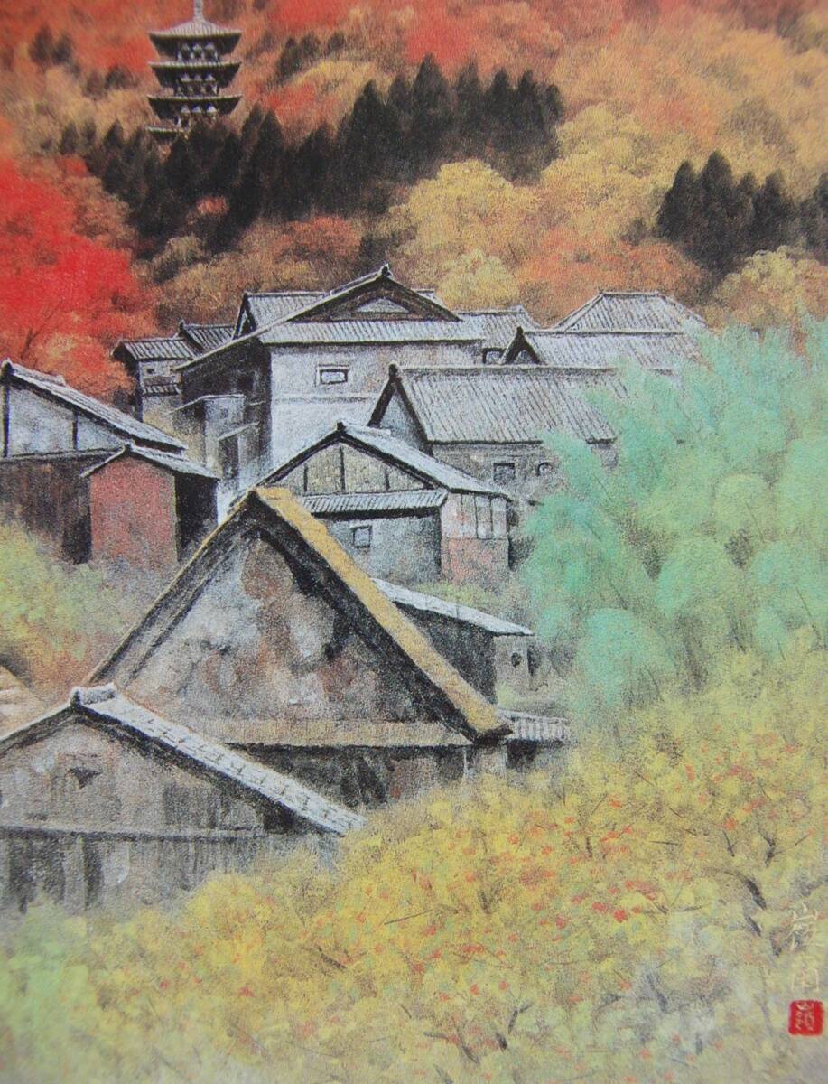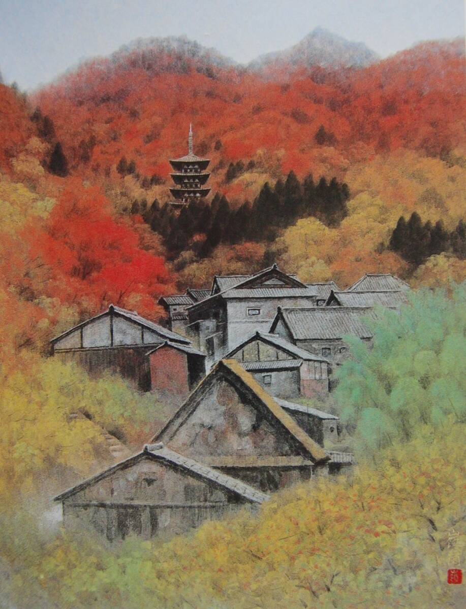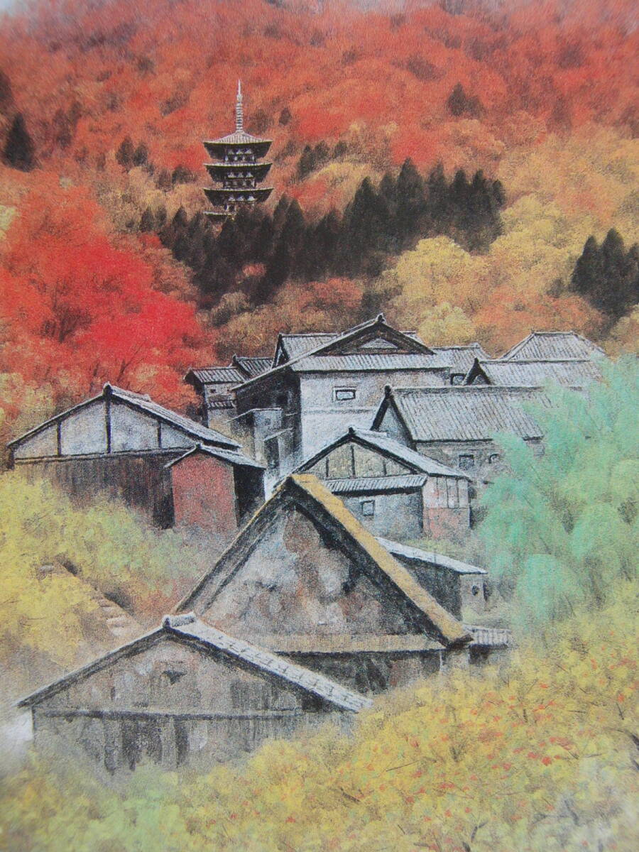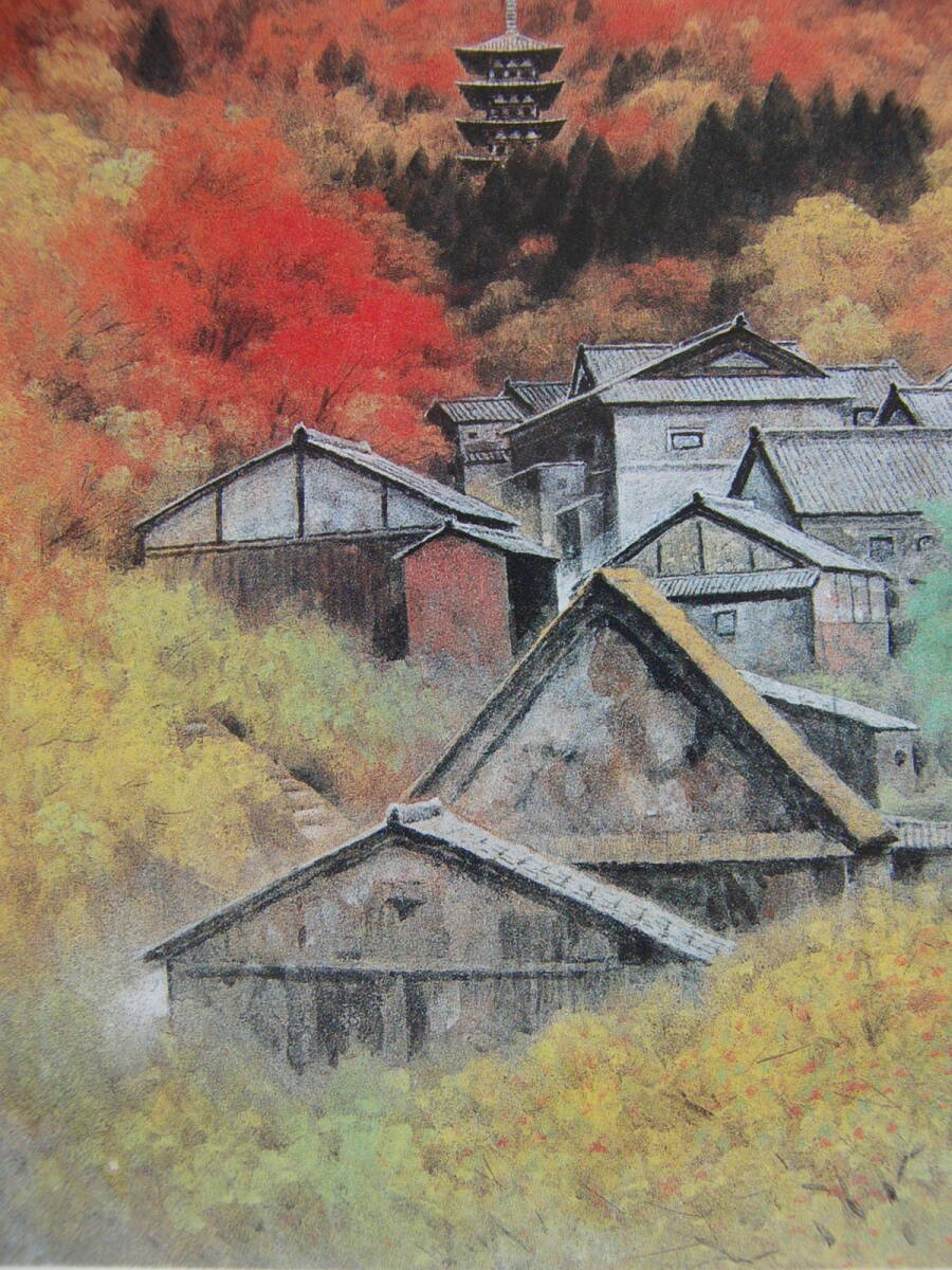 久保 嶺爾「明日香岡寺秋塔」 人気作品、希少画集・額装画、日本製新品額縁、状態良好、送料無料