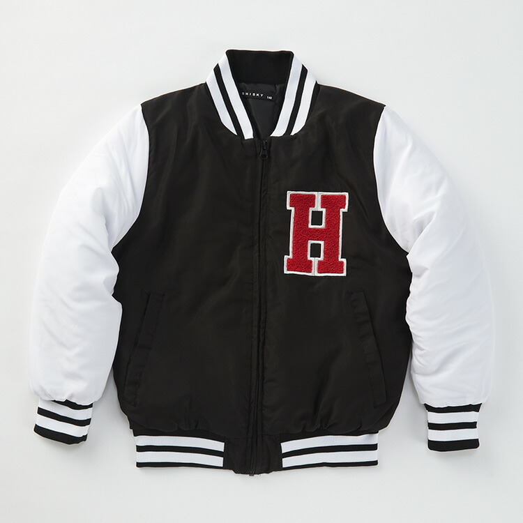 160cm スタジャン 子ども キッズ ブルゾン 中綿 スタジアムジャンパー ブラック(H)