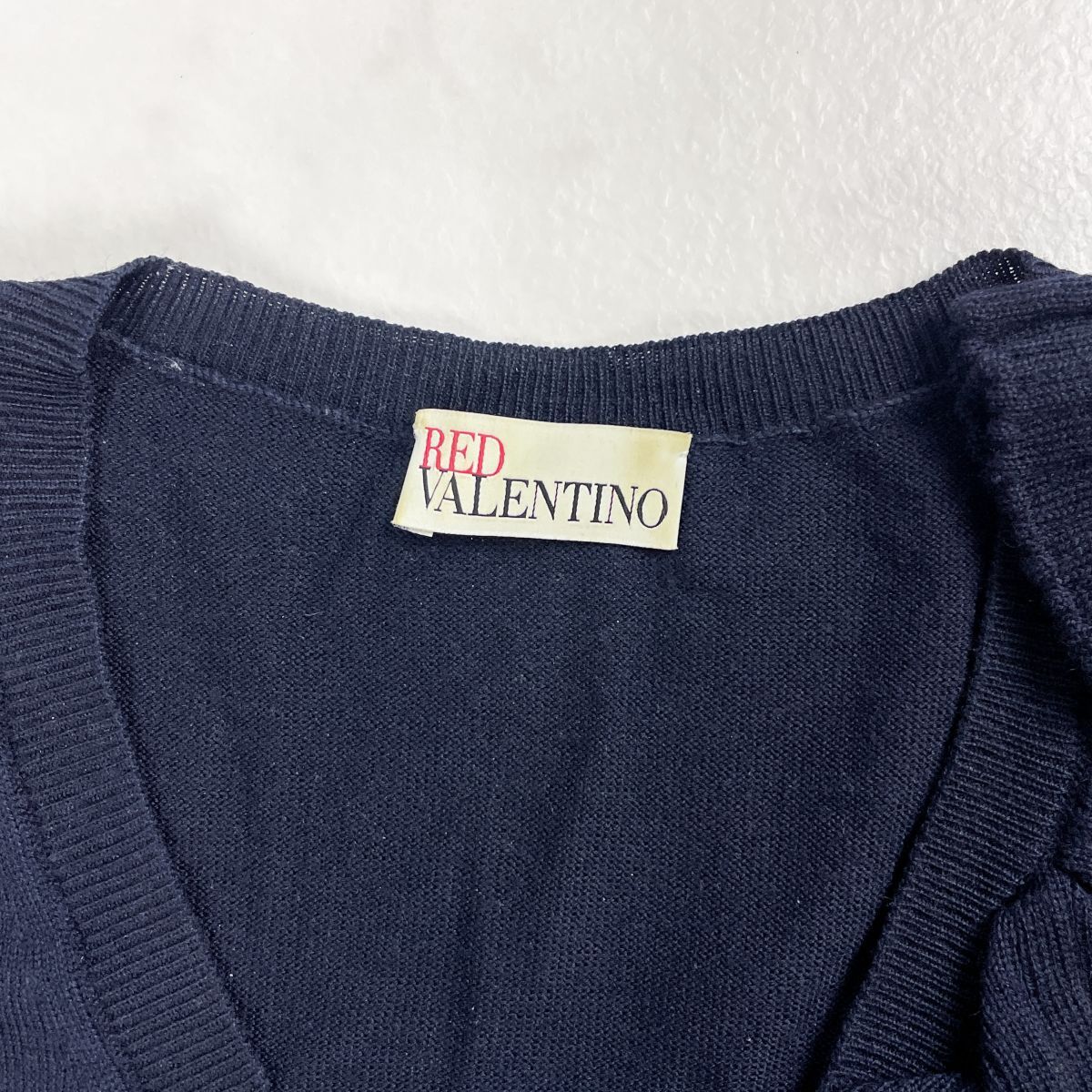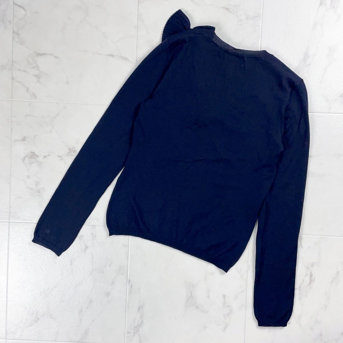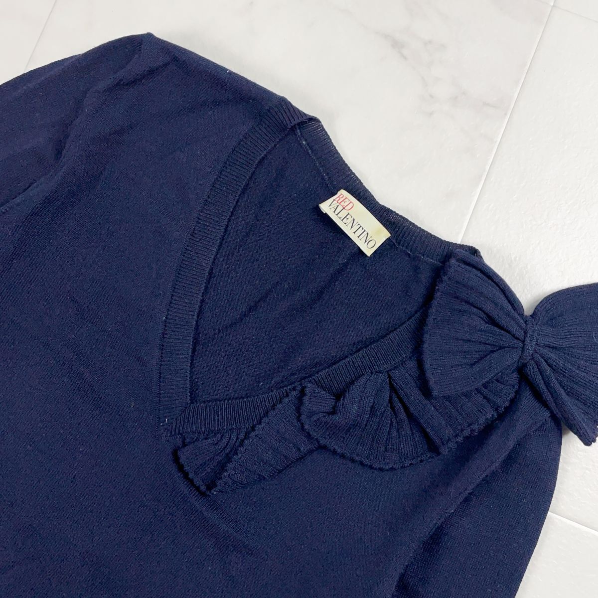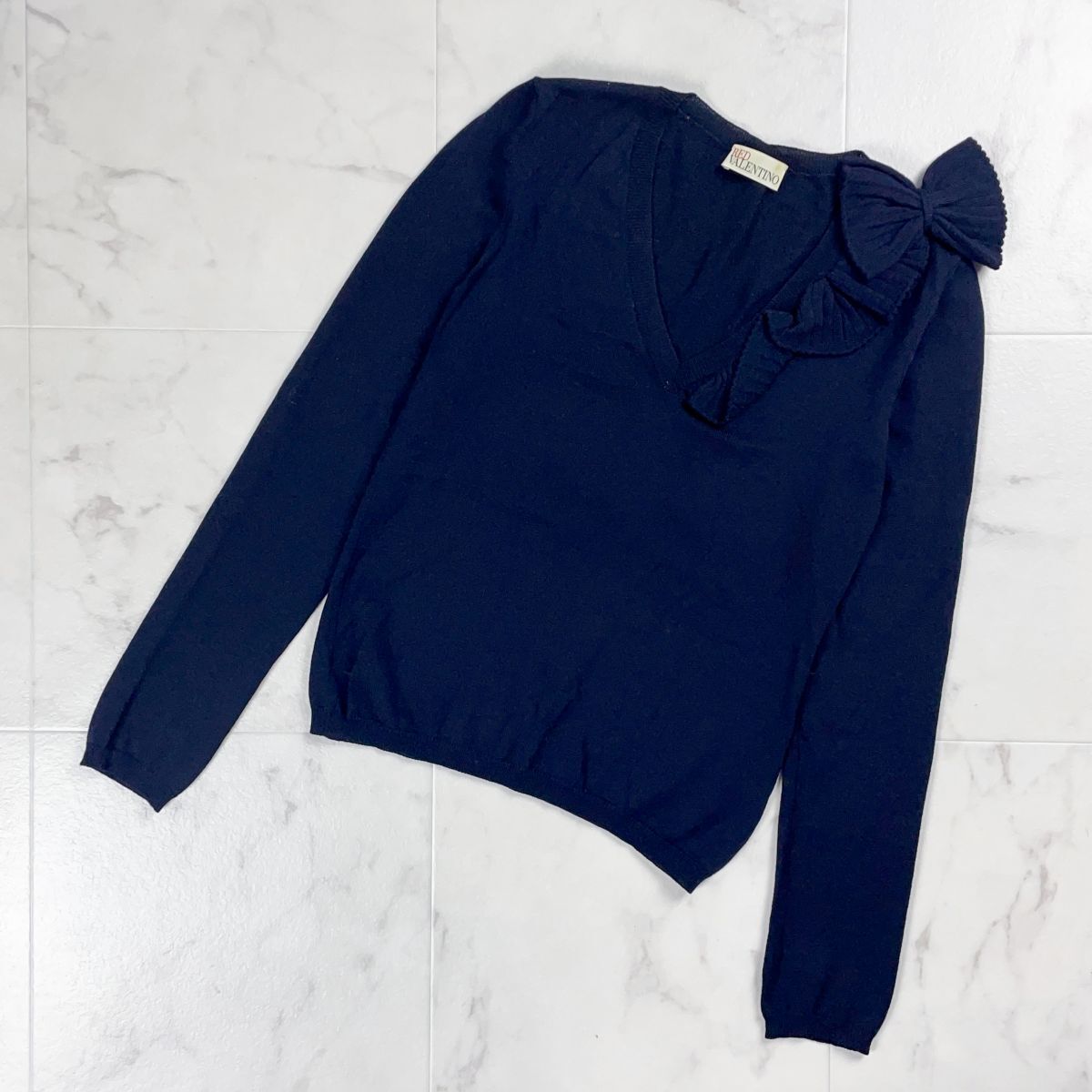 美品 RED VALENTINO レッドヴァレンティノ 肩リボンVネックニット 長袖セーター レディース 黒 ブラック サイズM相当*BD559