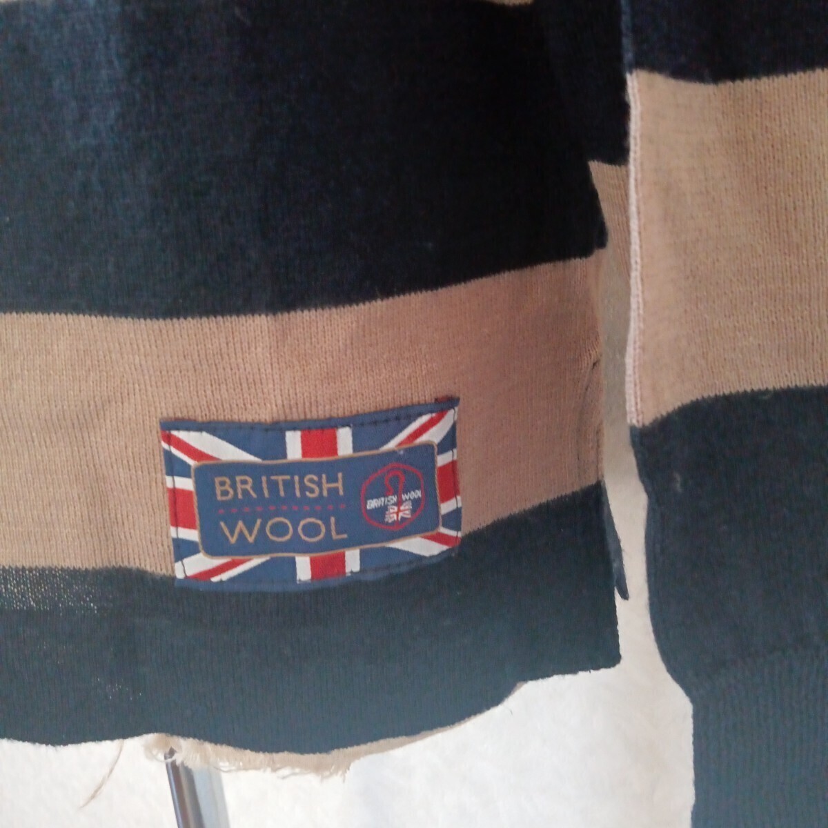 - 色: ネイビーとベージュのストライプ