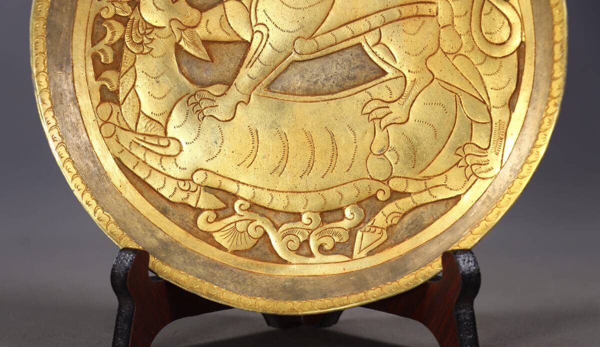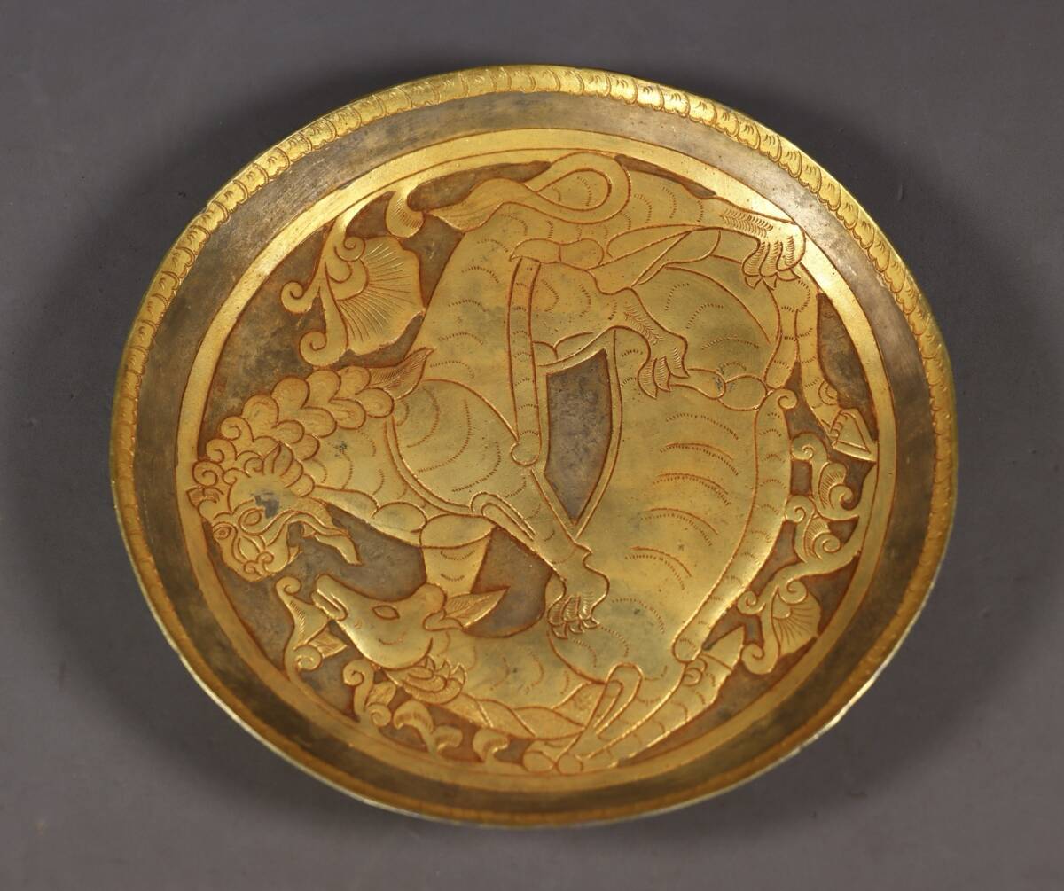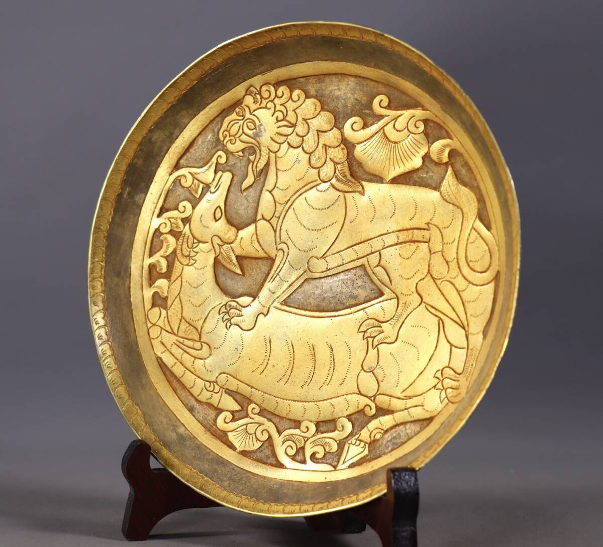 *珍品旧蔵* 清 局部塗金 波斯圖案盤 置物 唐物 古美術品 中国古玩 古美味 H45